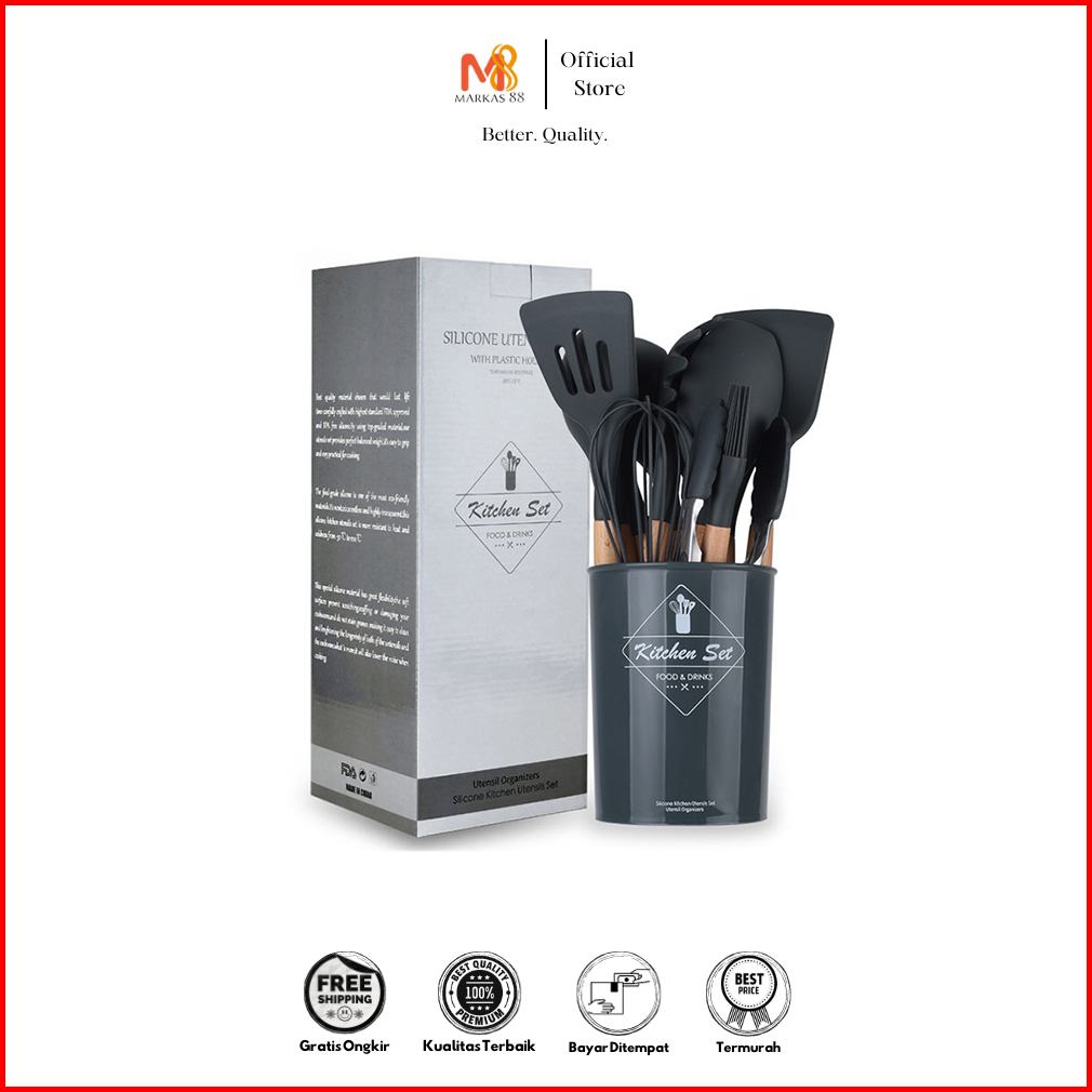 Markas88 Spatula Set Silicon 12 In 1 Peralatan Dapur Alat Masak Sutil Silikon Tahan Panas Anti Lengket