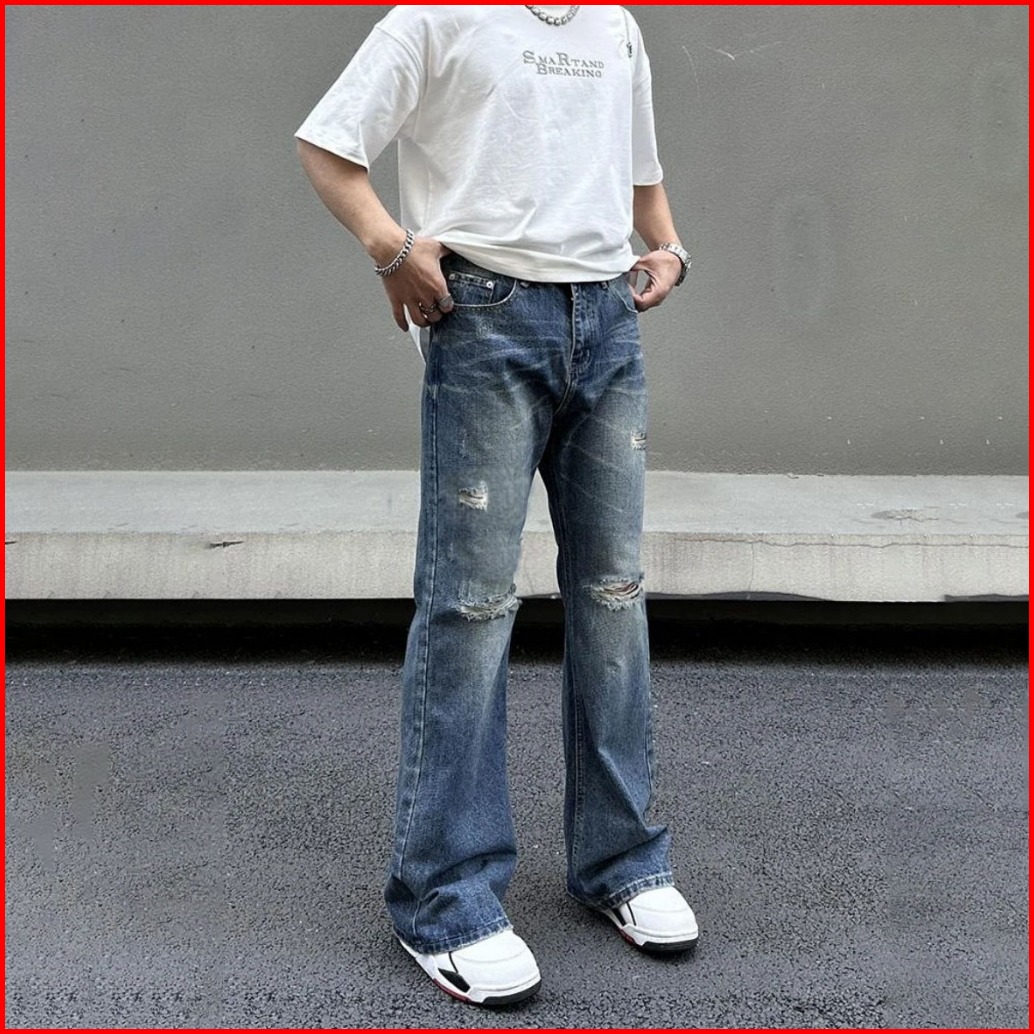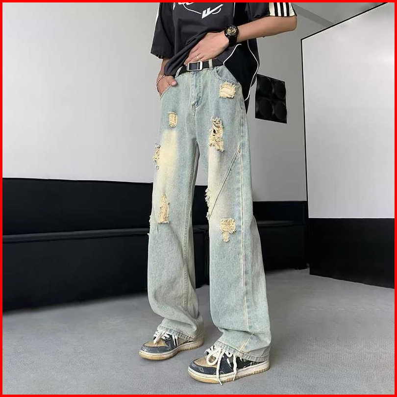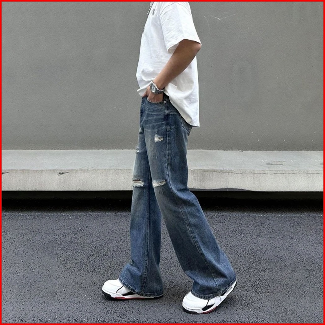 Celana Jeans Pria Panjang Baggy Sobek Pants Straight Celana Denim Dewasa Kulot Loose Fit Jumbo Cowok Korean Style Longga