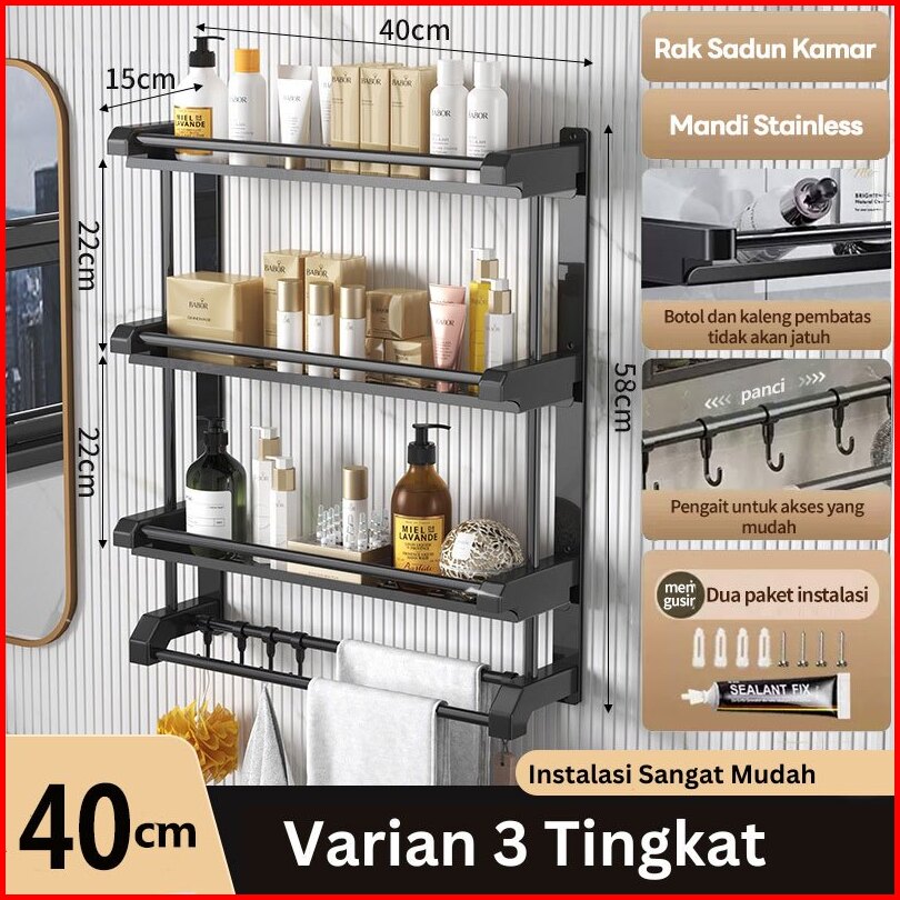 Rak Kamar Mandi Stainless Anti Karat Rak Sabun Kamar Mandi Hitamdinding Gantungan Handuk Kamar Mandi