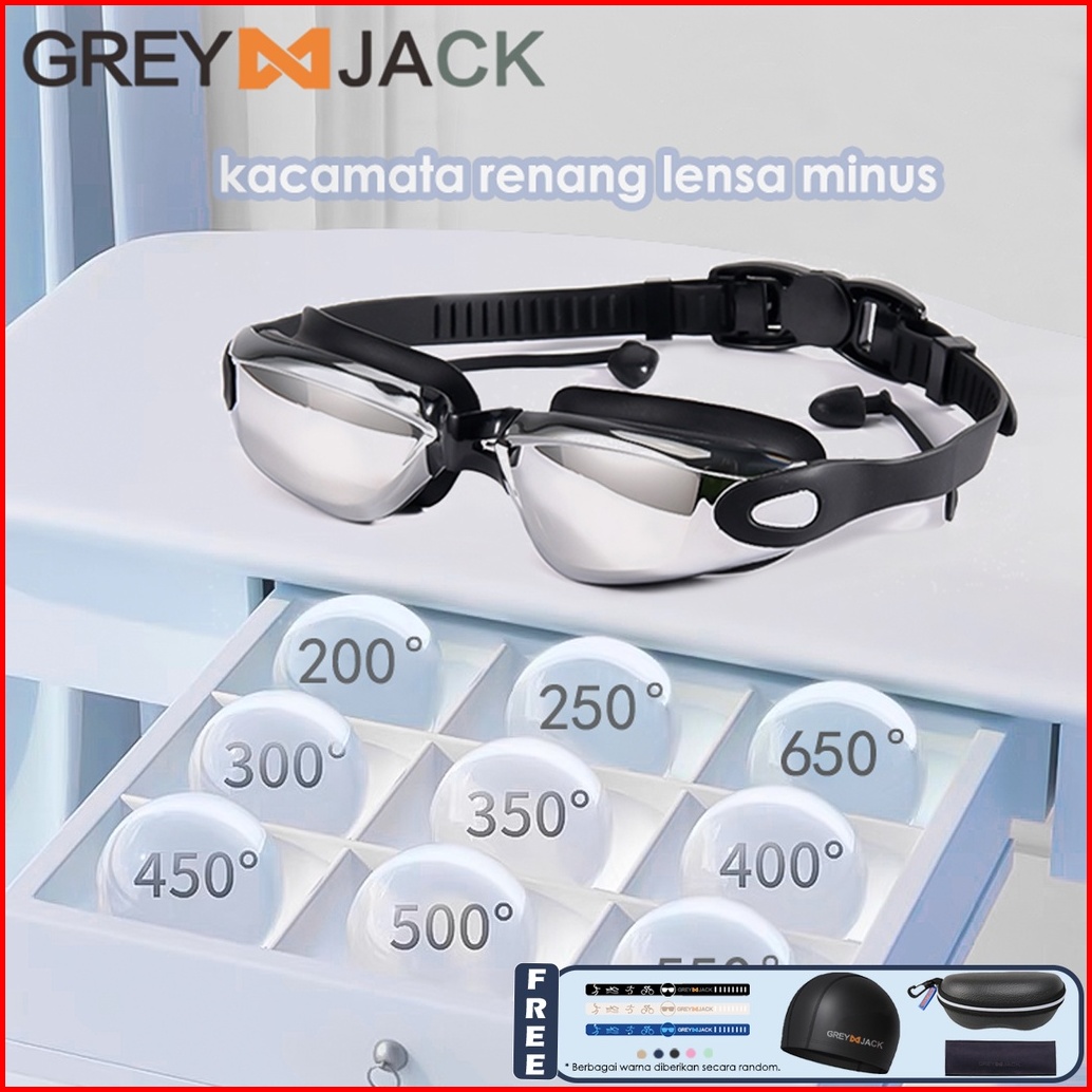Grey Jack Kacamata Renang Lensa Hd Dewasa Minus Lensa Anti Fog Tr90 Silicone Swimming Goggles Fashion Sporty Pria Dan