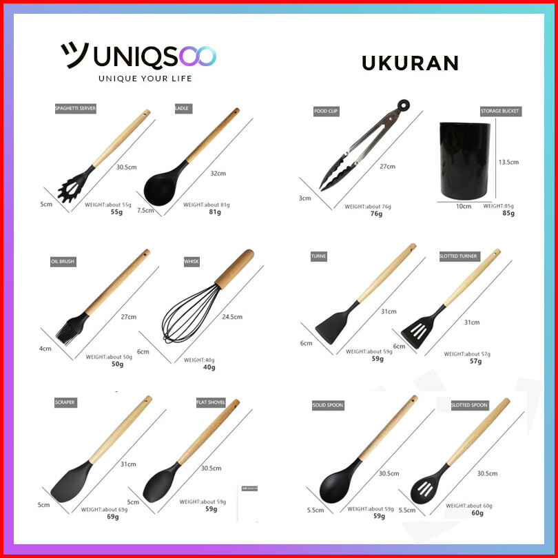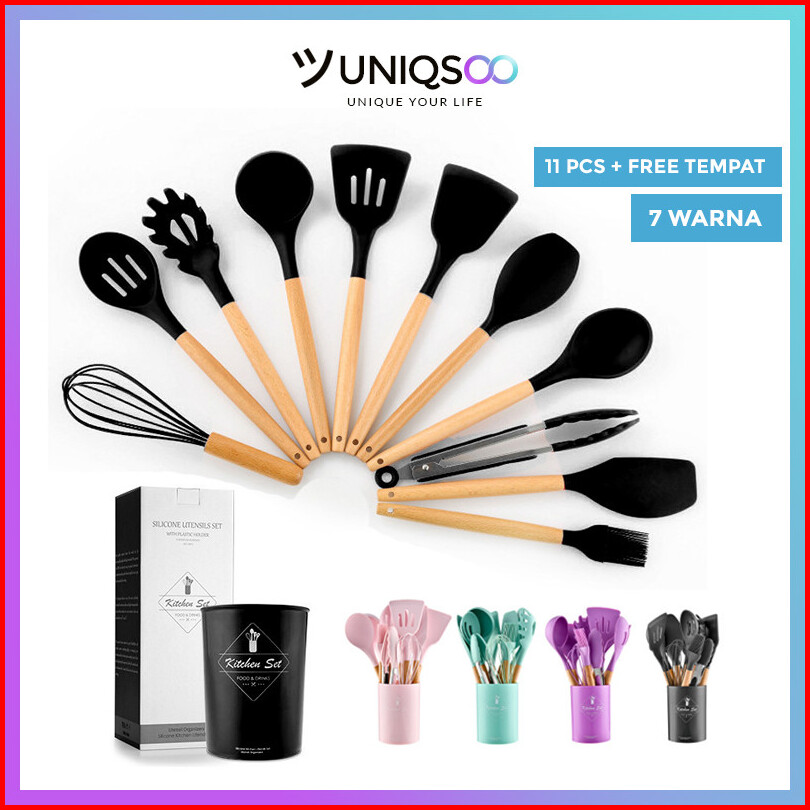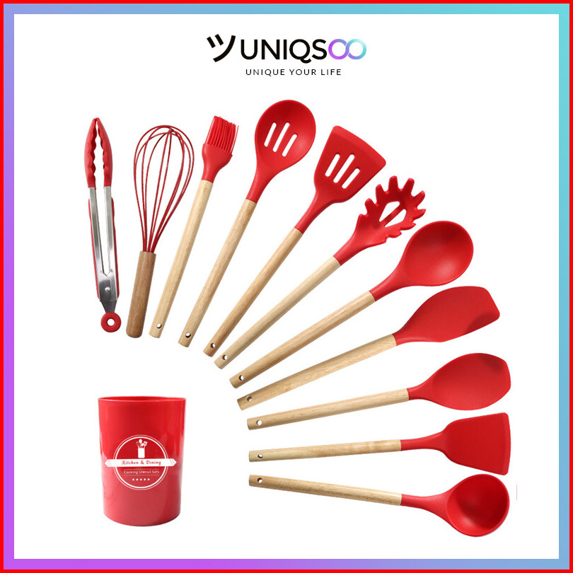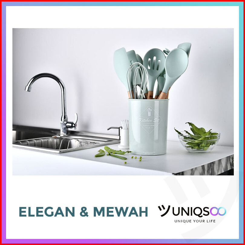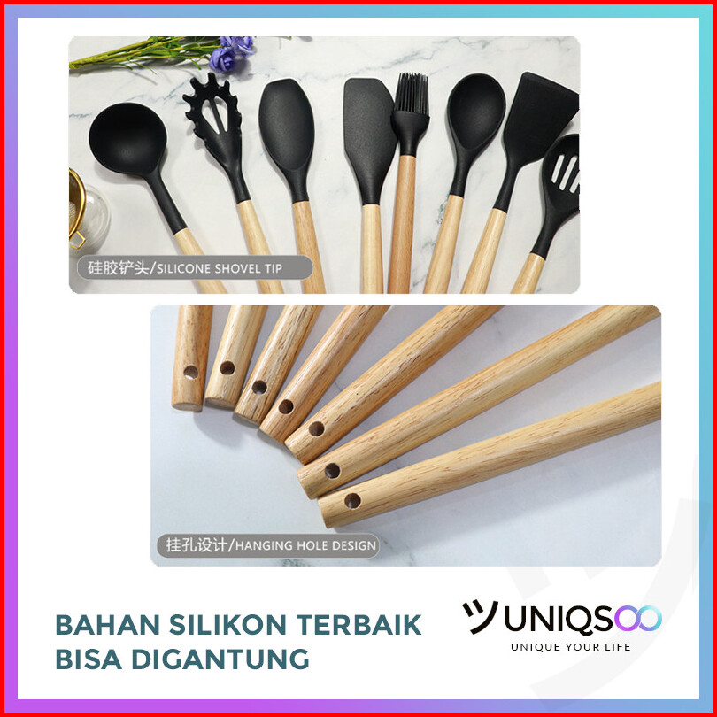 Uniqsoo Spatula Silikon Set 12 Pcs Tahan Panas Alat Dapur Peralatan Masak Set Lengkap Cf051