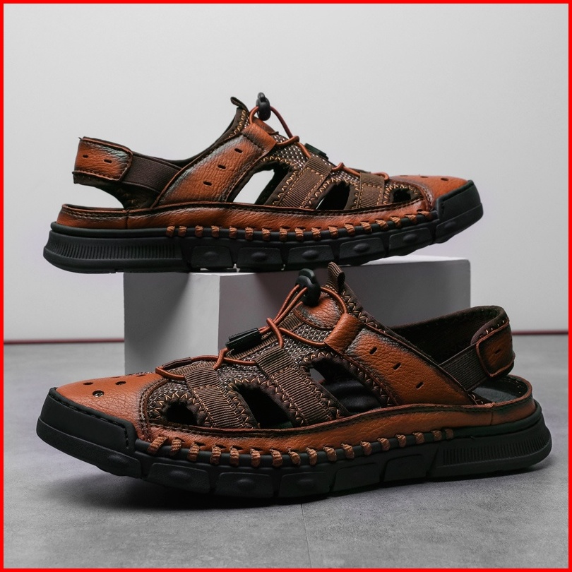 Sandal Gunung Mtb Sendal Pria Gunung Hiking Mendaki Kulit Asli Outdoor Handmade Olahraga 046