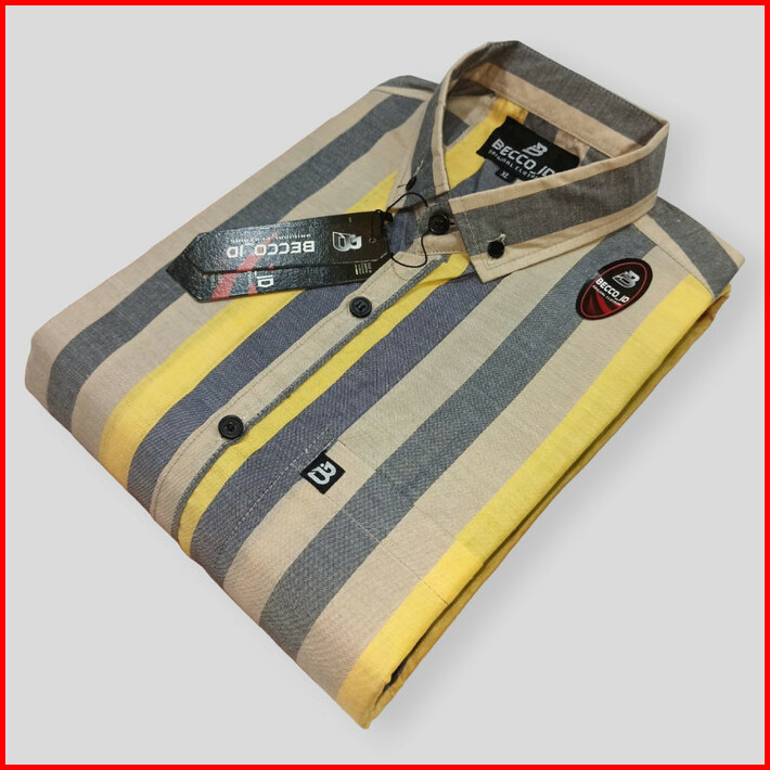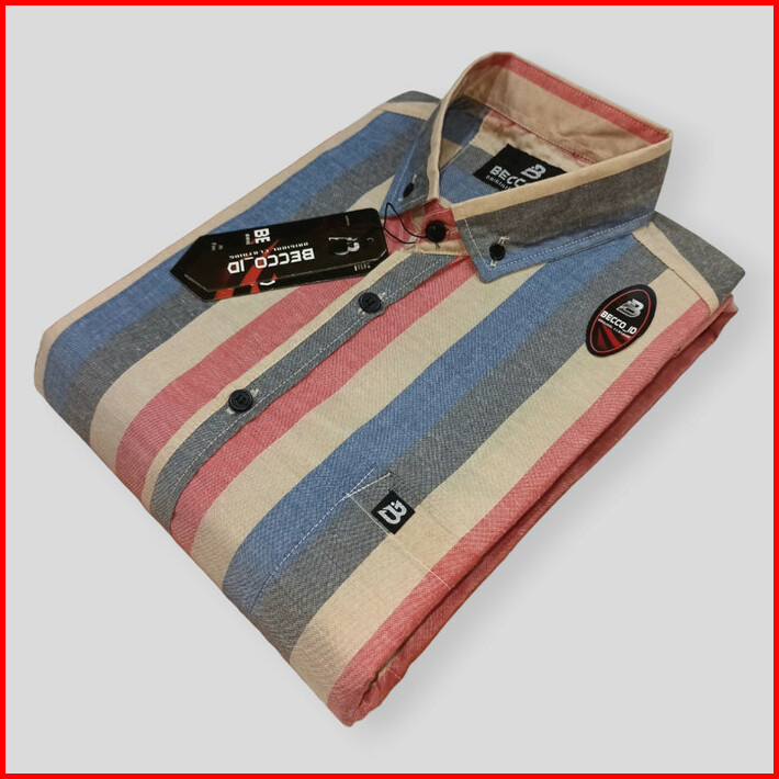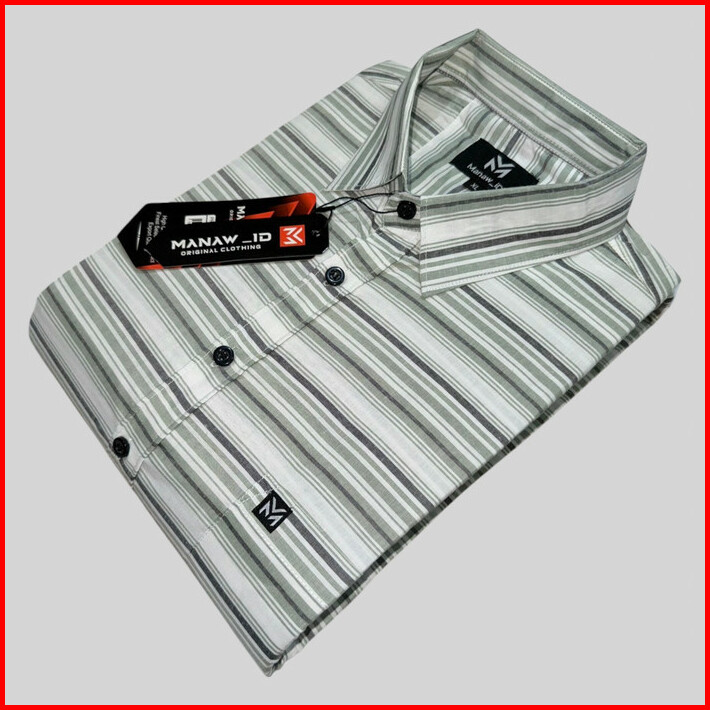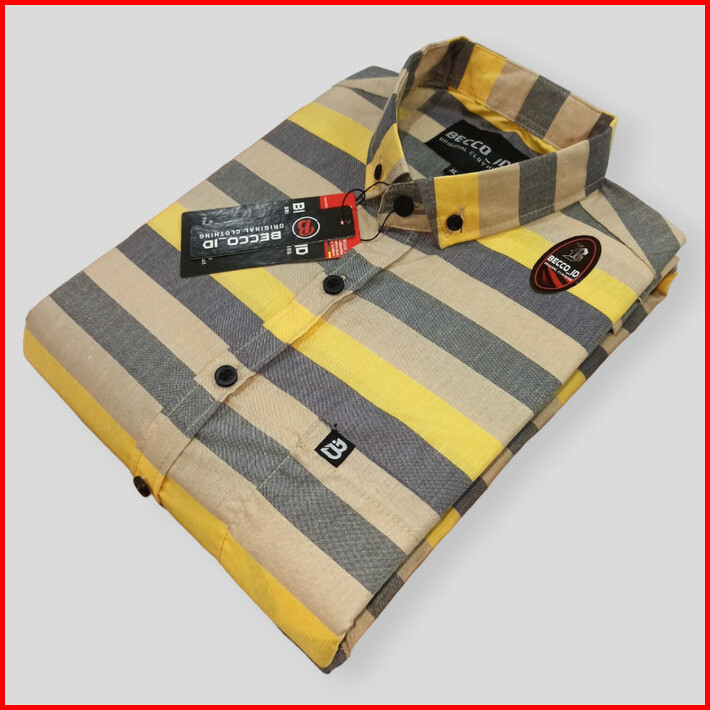 Kemeja Casual Pria Lengan Pendek Motif Salur Cotton