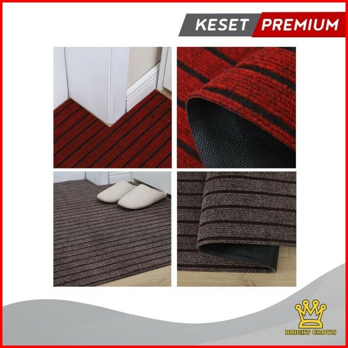 Bright Crown 2in1 Keset Dapur Premium Motif Garis Karet Pvc Antislip