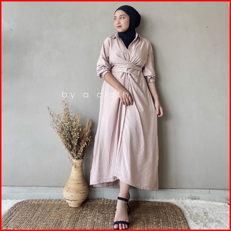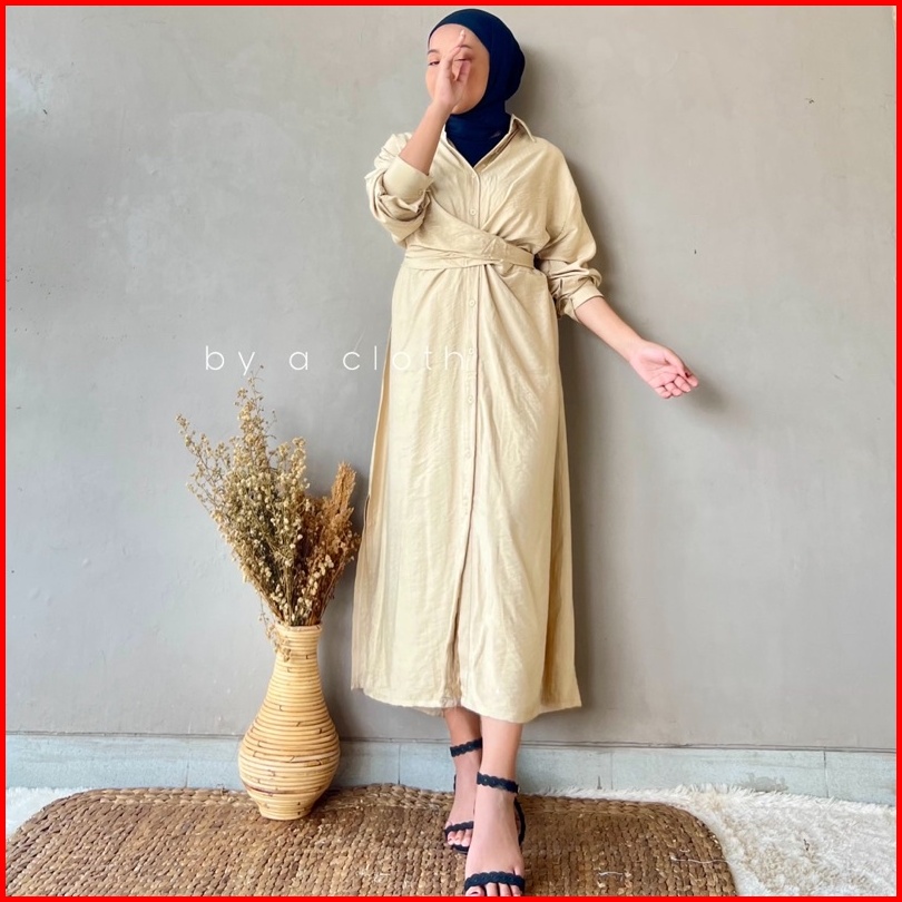 Chacha Dress Lilit Linen - Midi Dress - Linen Tunik - Gaun Pesta - Gamis Kondangan - Shirt Dress - Dress Wanita - By A C