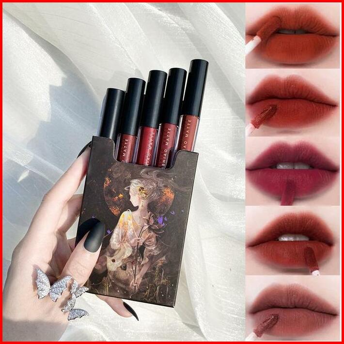 Promo Cod5pcs Set Lipstik Matte Tahan Lama Velvet Matte Liquid Lipstick Yang Anti Air Dan Tidak . Tersedia Dalam Set Had