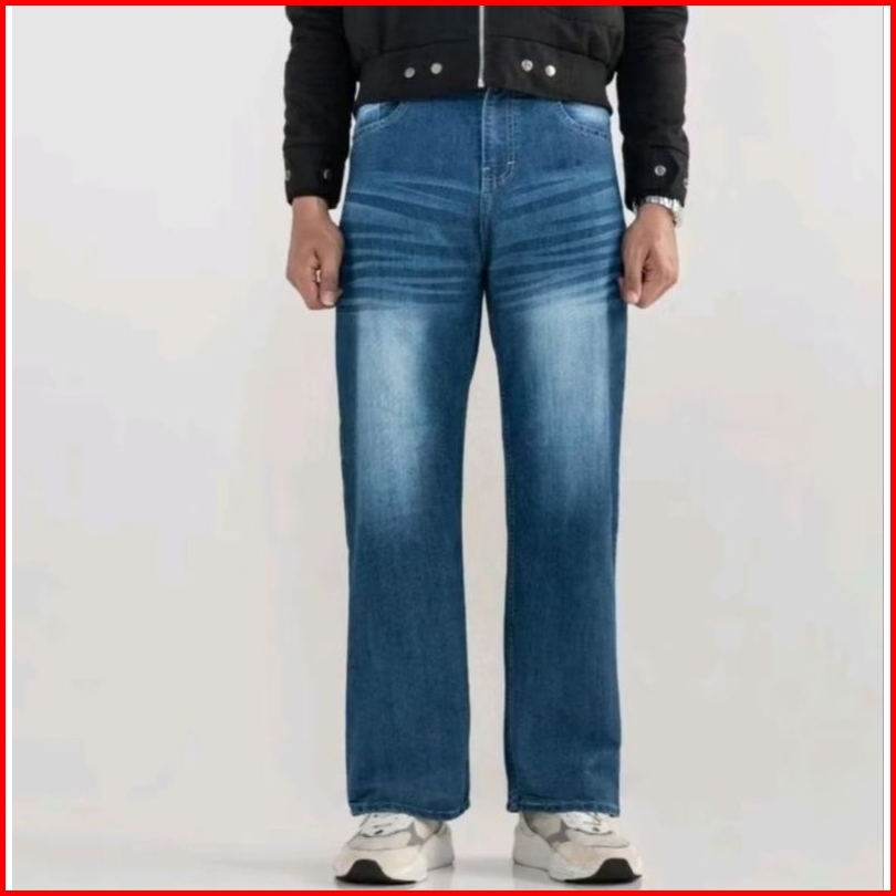 Baggy Jeans Pria Gombrang Skena Black Wisker Celana Panjang Losefit Jumbo Denim Hitam Loose Nyaman