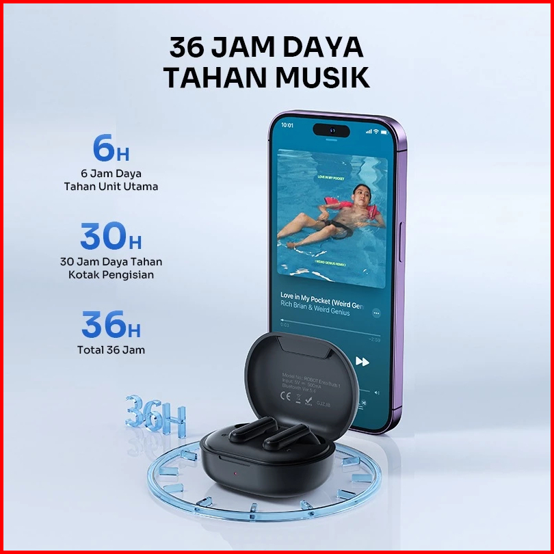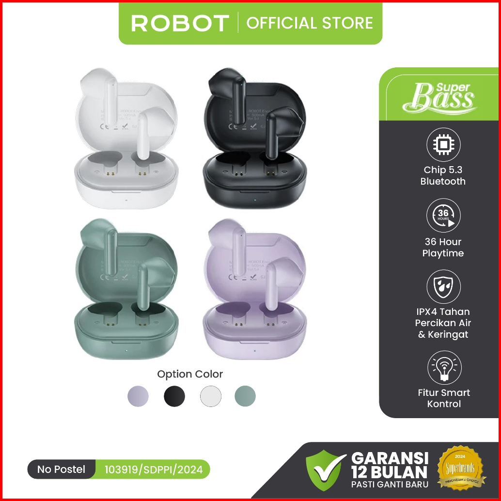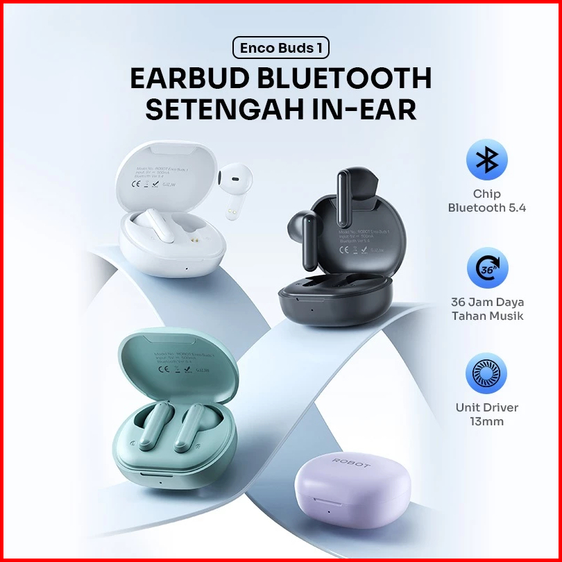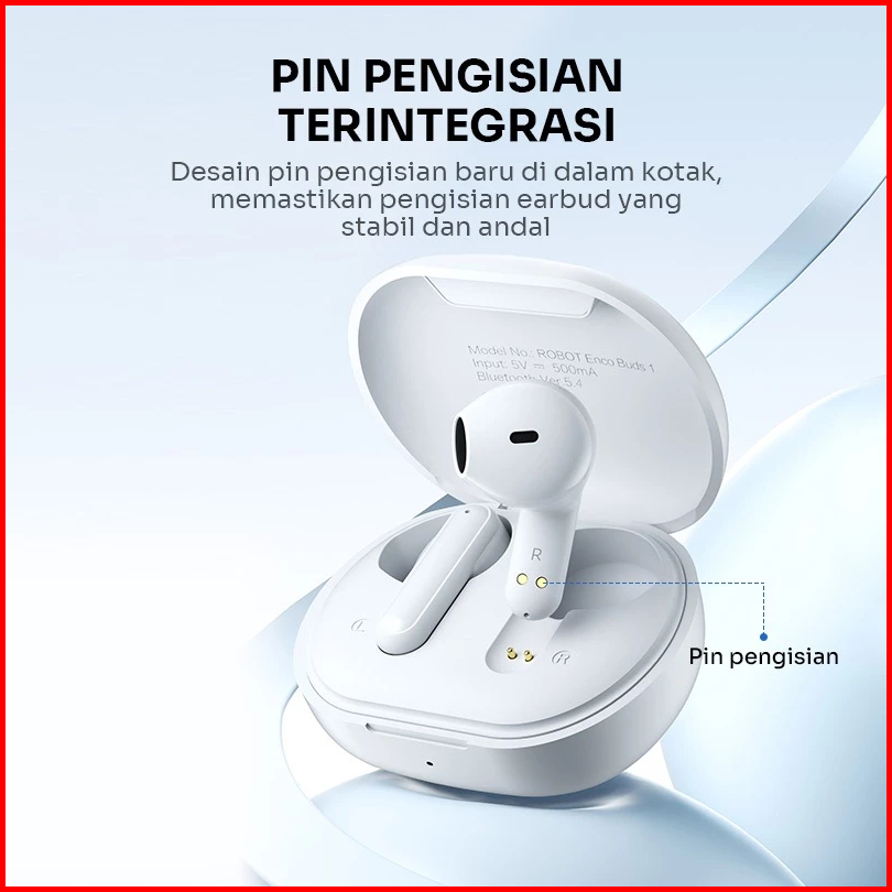 Robot Tws Airbuds True Wireless Bluetooth 5.4 Earbuds Powerful Bass Enco Buds 1 Semi In-ear Design Mini Sports Earphones