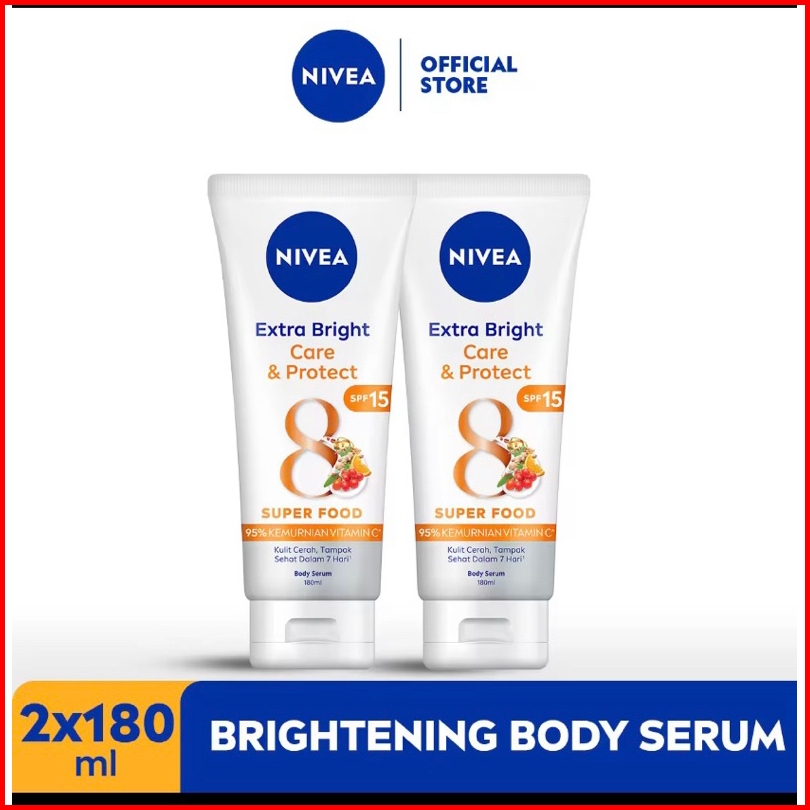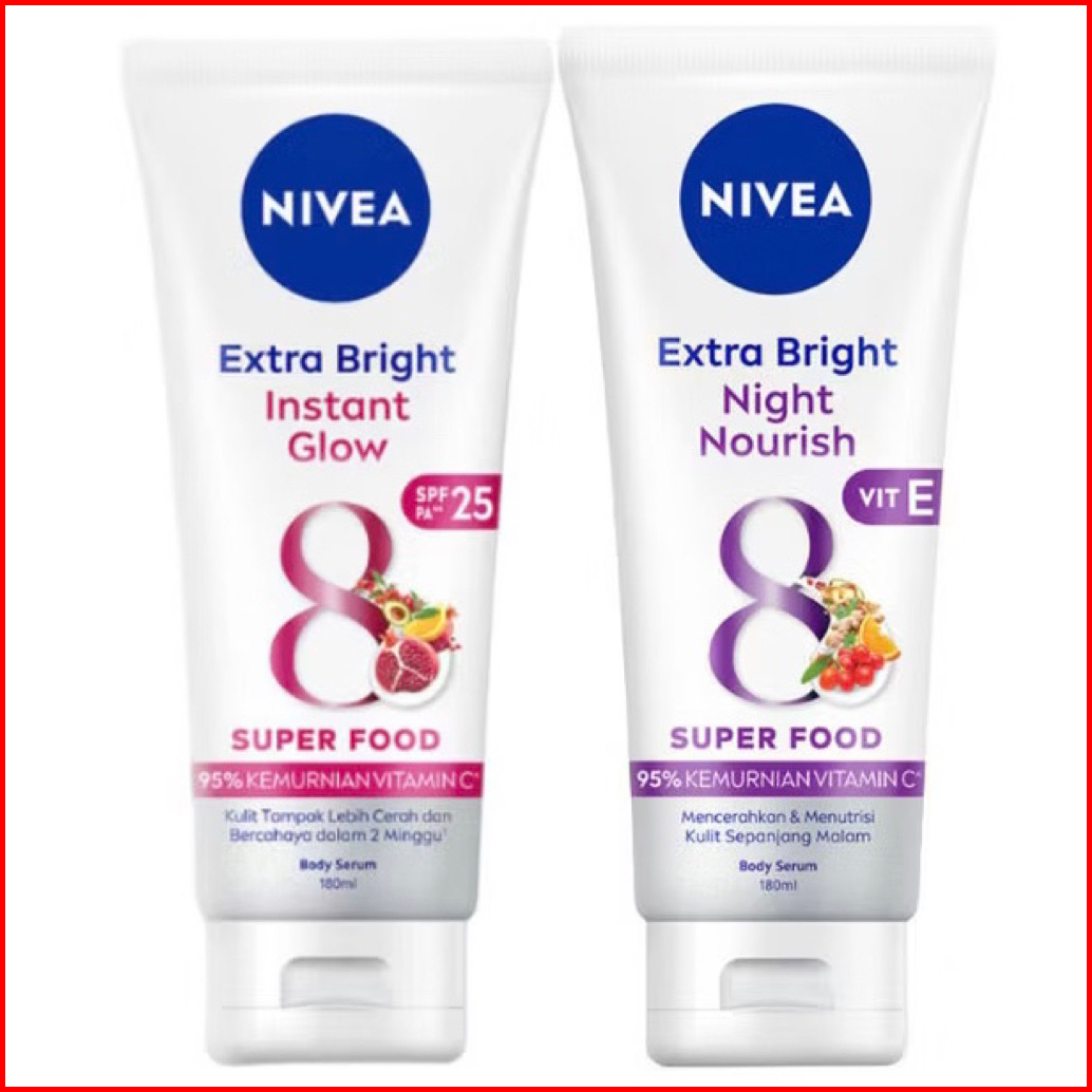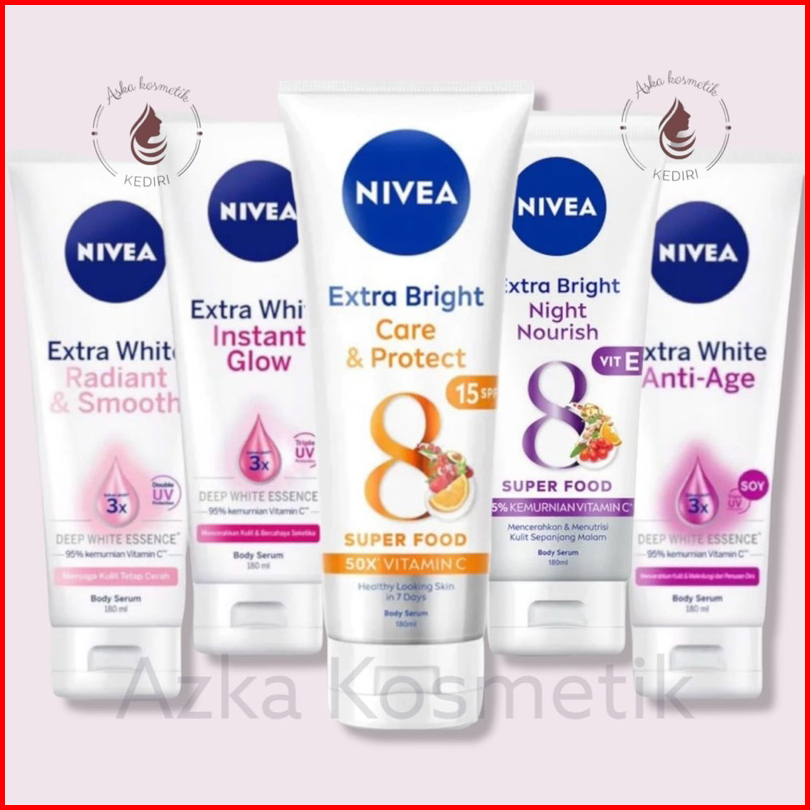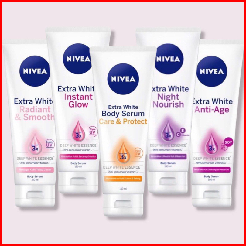 Paket Bundling Nivea Extra White Body Serum 180ml Care Protect Night Nourish Glow Anti Age Radiant Smooth