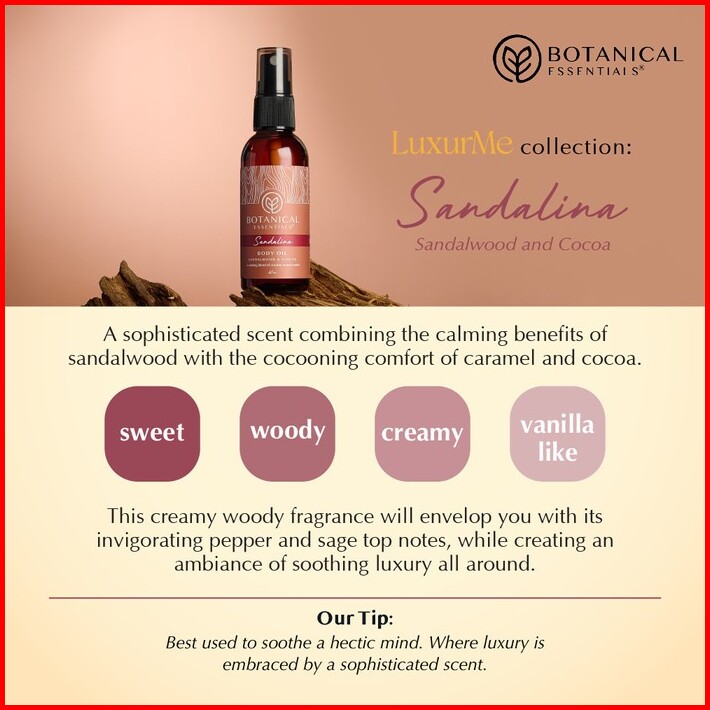 Patchouli, Ylang, Bergamot, Vetiver, Sandalina, Amandine, Gerania