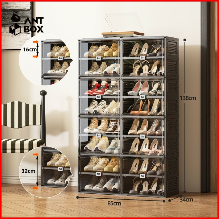 Antbox Rak Sepatu Lemari Sepatu Kabinet Susun Hitam 32 Pasang Aesthetic Minimalis Pintu Magnet