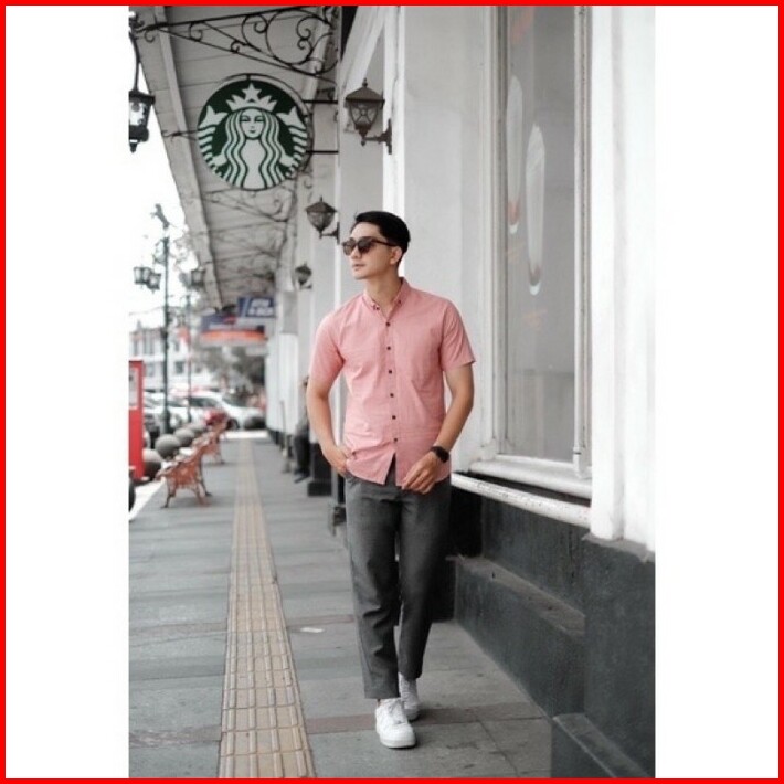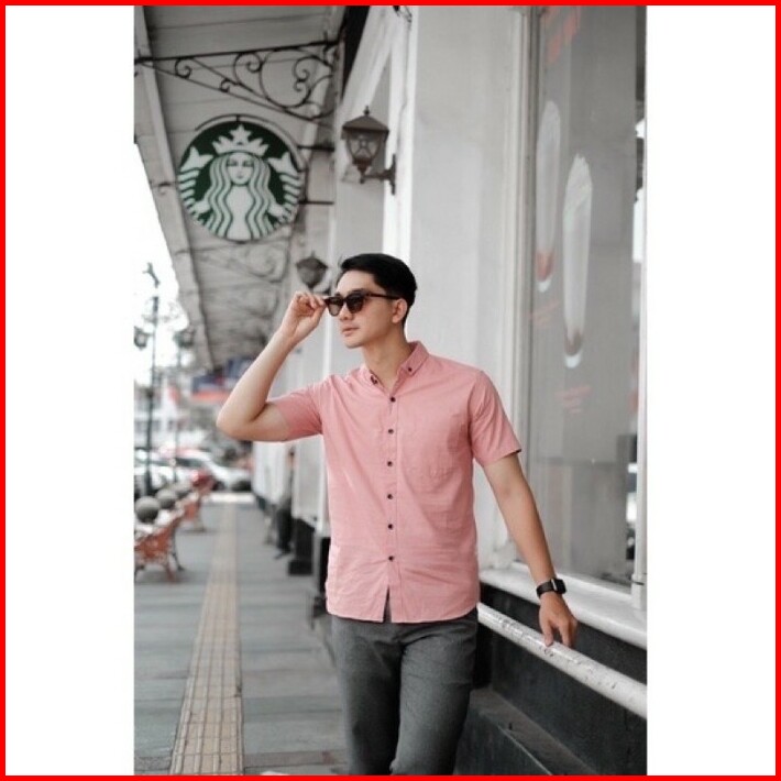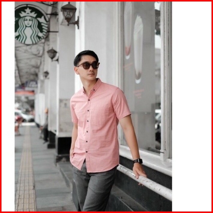 Baju Kemeja Polos Pria Lengan Pendek Katun Kemeja Cowok Distro