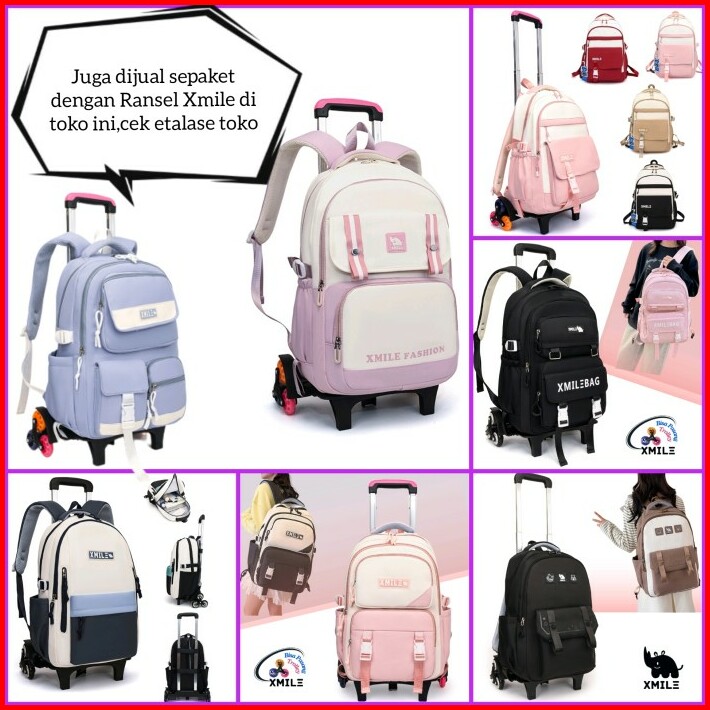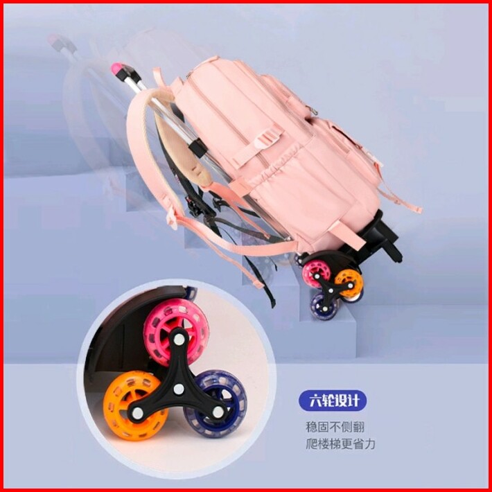 Trolley Tas Sekolah Multifungsi Troli Tas Sekolah Trolly Tas Ransel Trolley 2 Roda 6 Roda Import