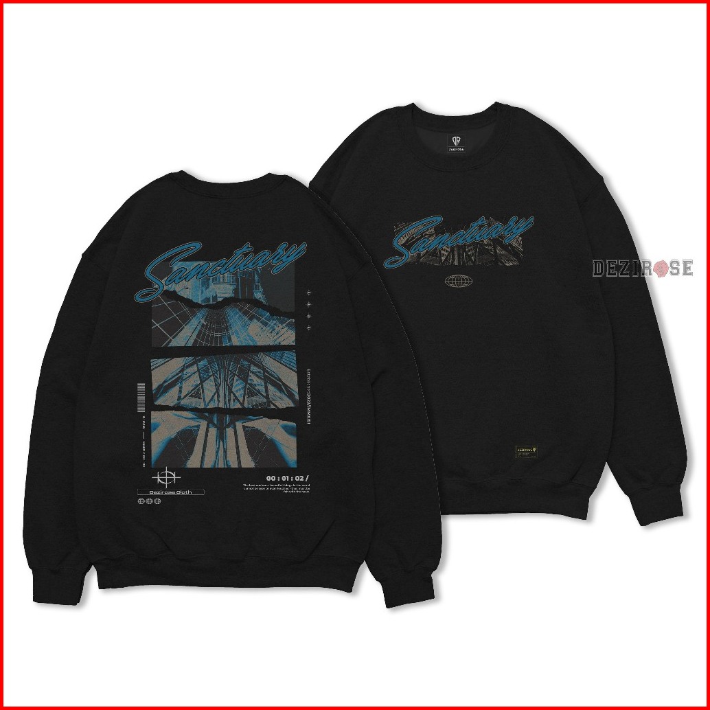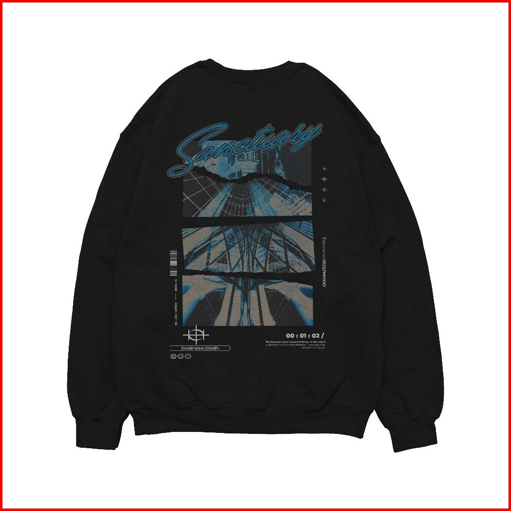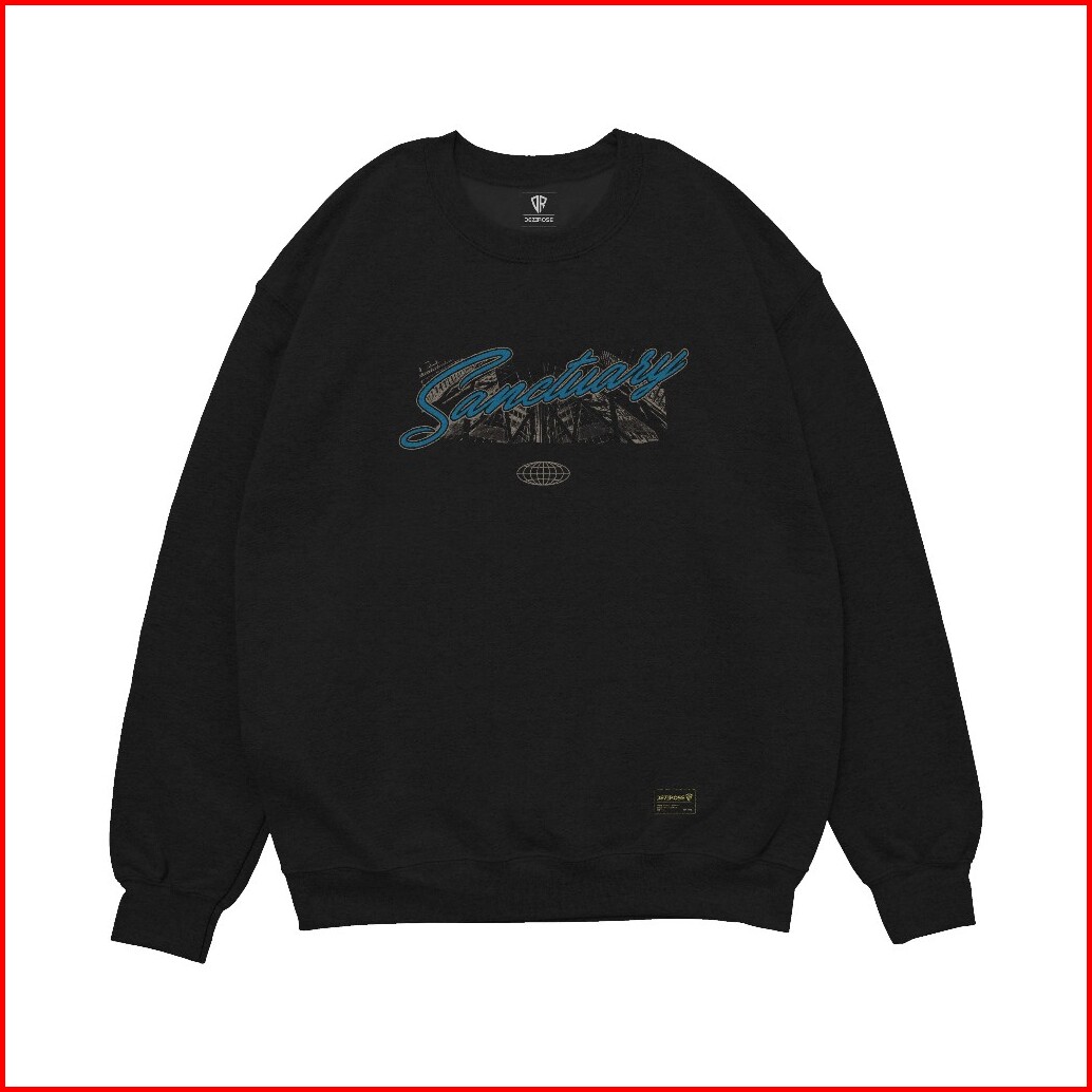 Dezirose Crewneck Sanctuary - Hitam Sweater Pria Distro Fleece 280gsm Tebal Premium Size M-xxl