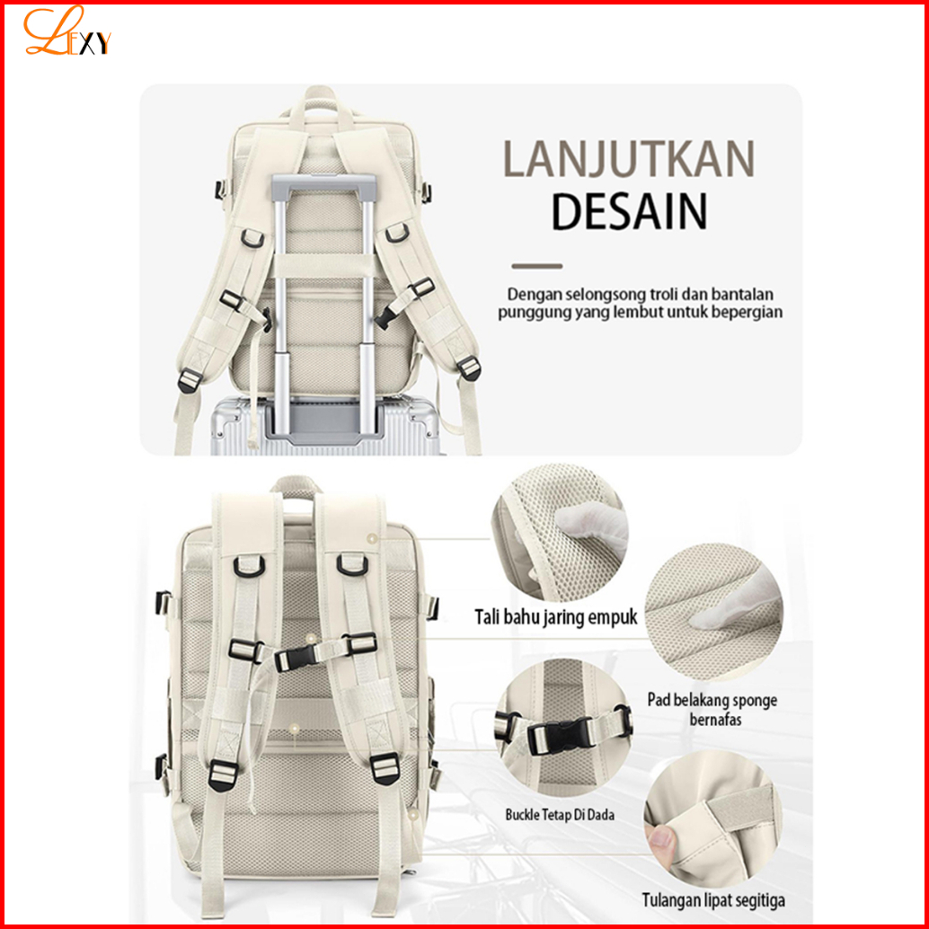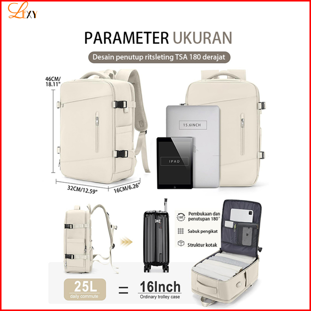 Lexy Tas Ransel Traveling Wanita Tahan Air Berkapasitas Besar Dengan Kompartemen Sepatu Dan Port Usb