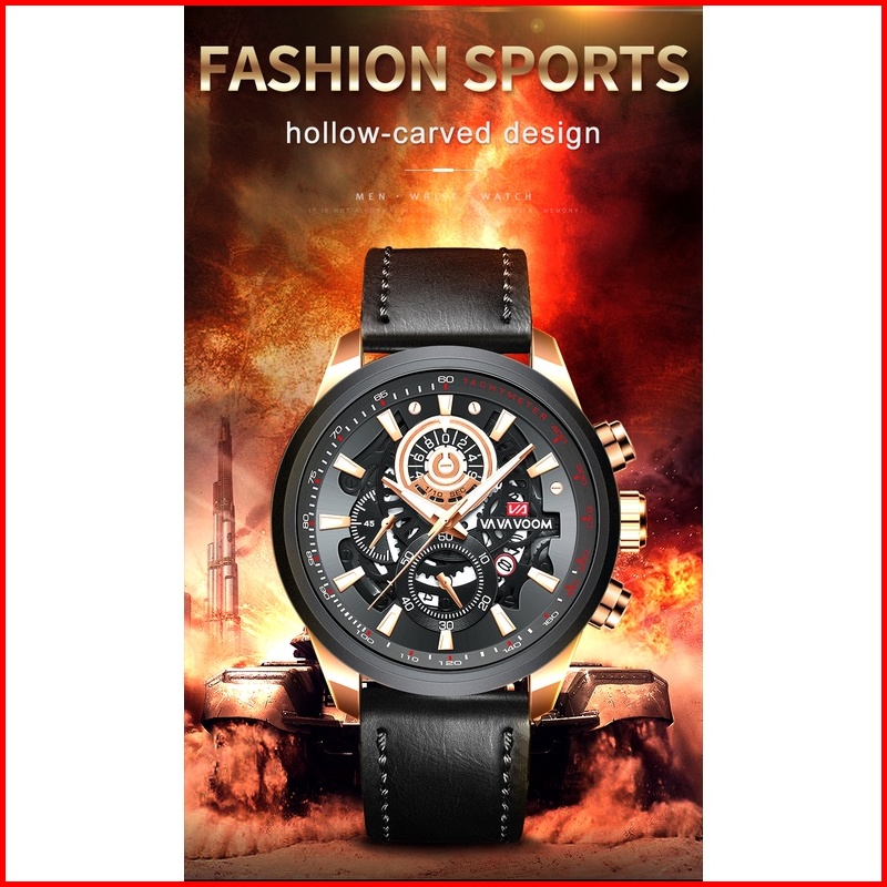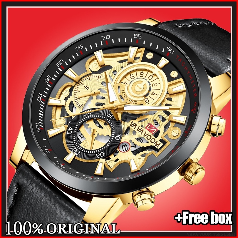 Vava Voom 2311 Jam Tangan Pria Luxury Kulit Stainless Steel Quartz Original Tahan Air Watch Kotak Gratis