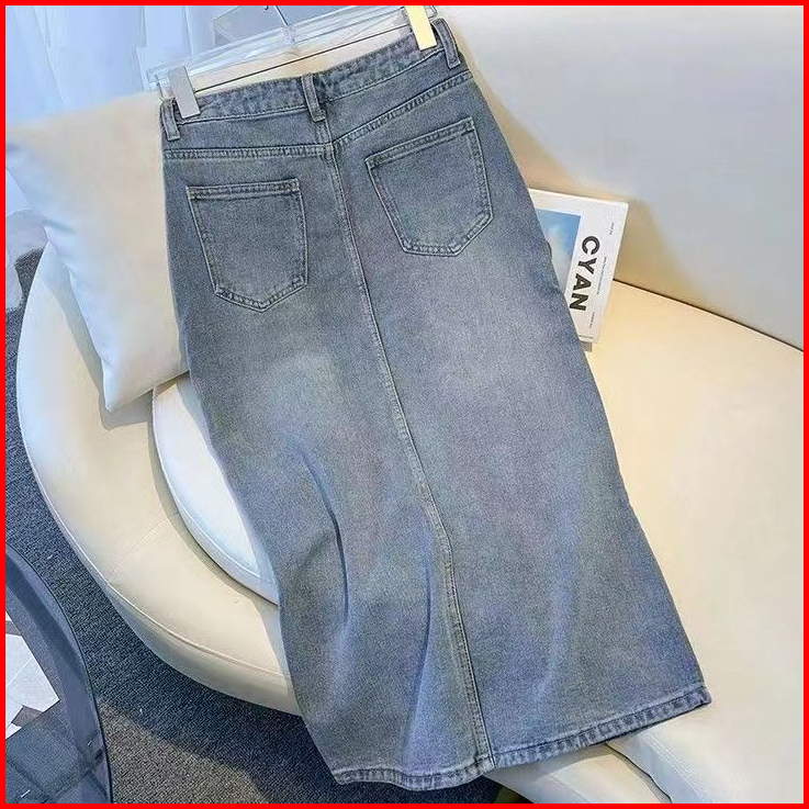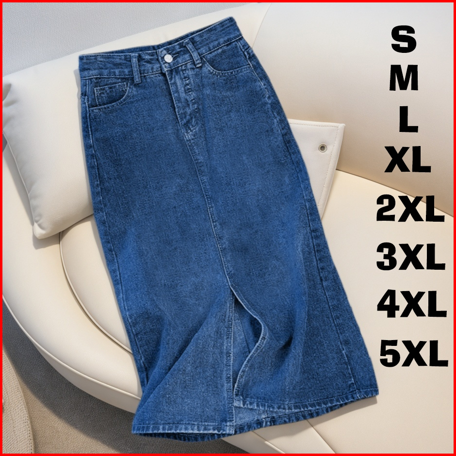 Boll.idrok Jeans Jumbo Rok Korean Style Skirt Denim Midi Wanita A Line Highwaist Rok Jeans Panjang Jumbo Rok Jeans Belah