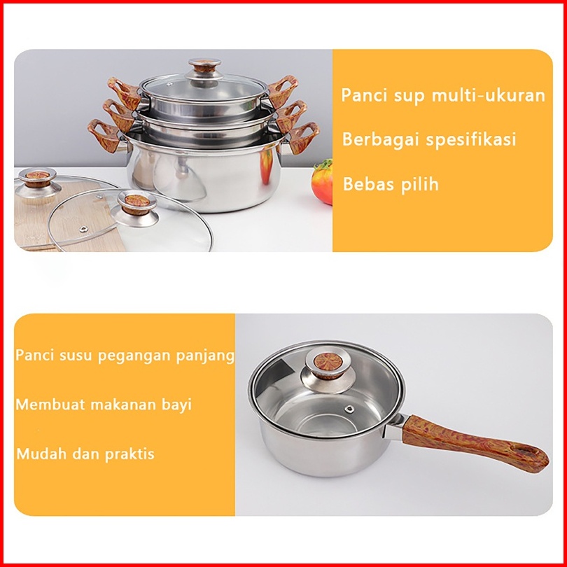 Homedekor Panci Set Stainless Steel 12 Pcs Dengan Teko Panci Set Anti Lengket Panci Serbaguna Dan Anti Gores