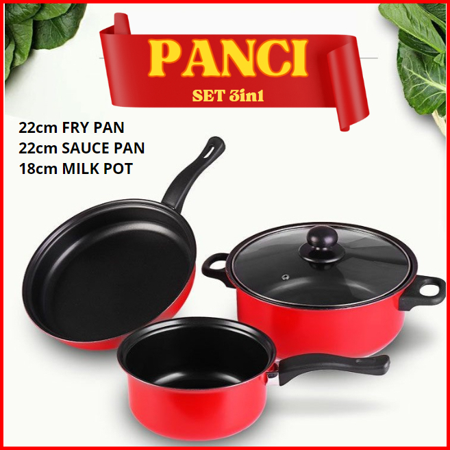 Panci Set 3 In 1 Anti Lengket Panci Teflon Anti Lengket