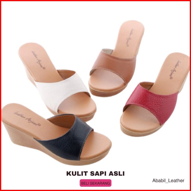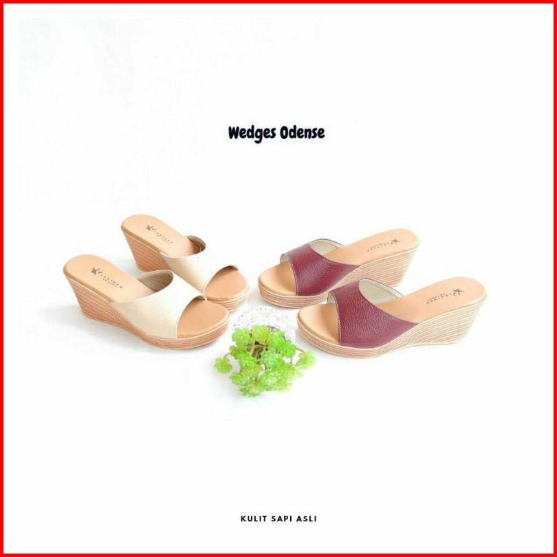 Sandal Wedges Kulit 7cm Selop Papirut Wanita Ibu Ibu Kondangan Pesta Selop Odense