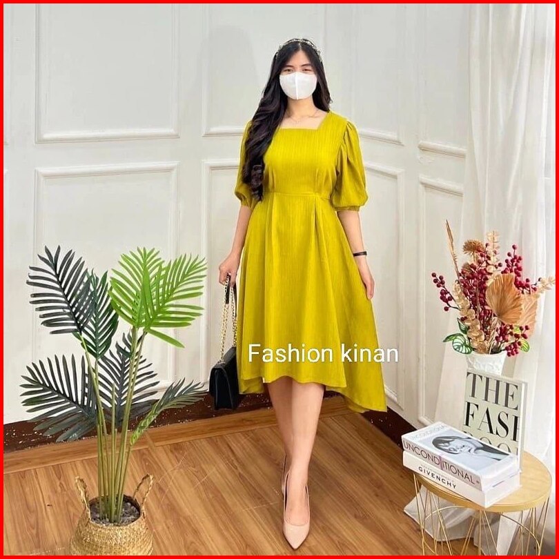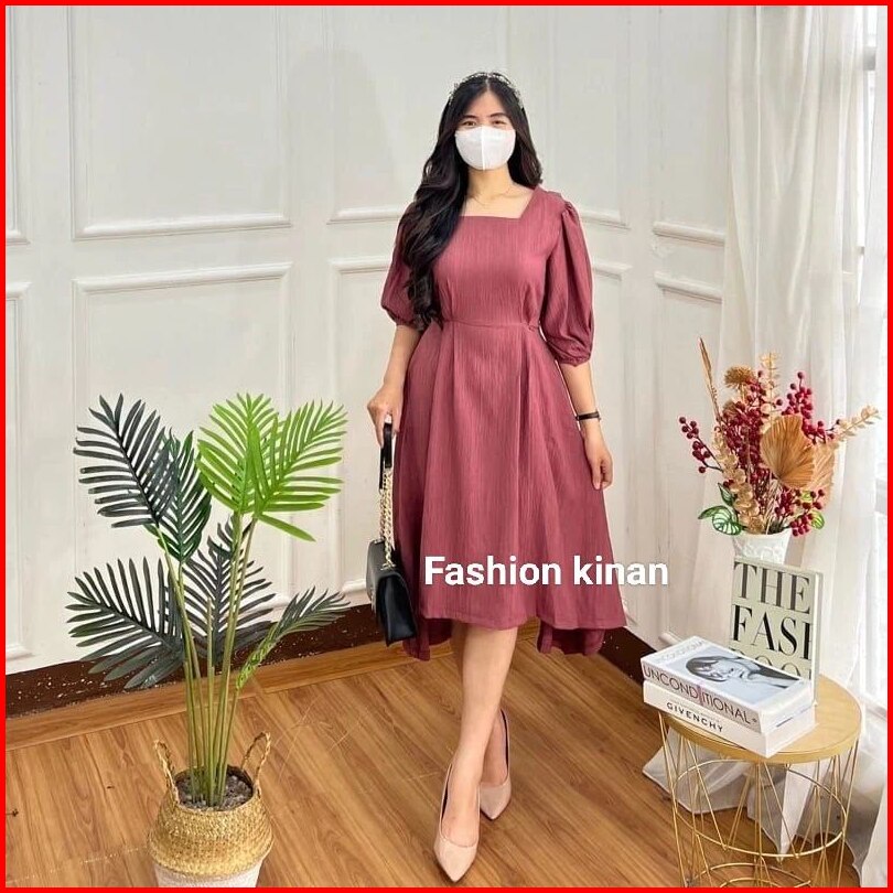 Dress Leora Wanita Ladycrush Premium Midi Dress Korea Dress Fashion Wanita Korean Style
