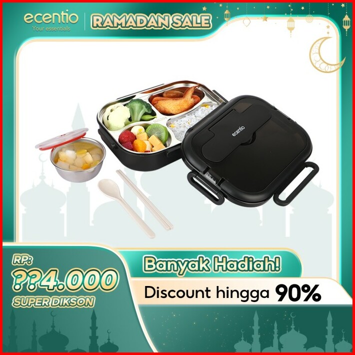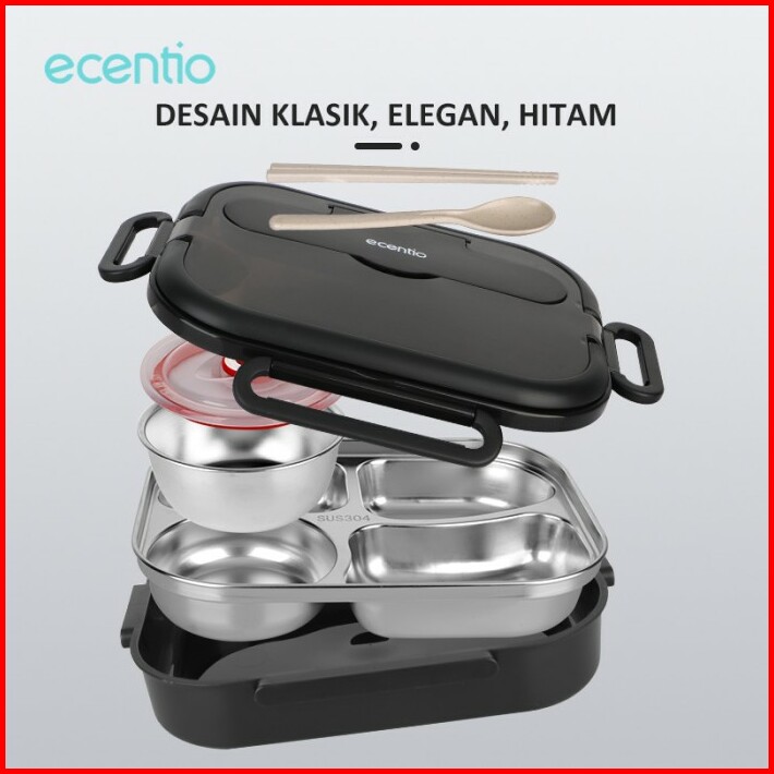 Ecentio 1l Tempat Makan Stainless Steel Lunch Box Kotak Makan Bpa Free