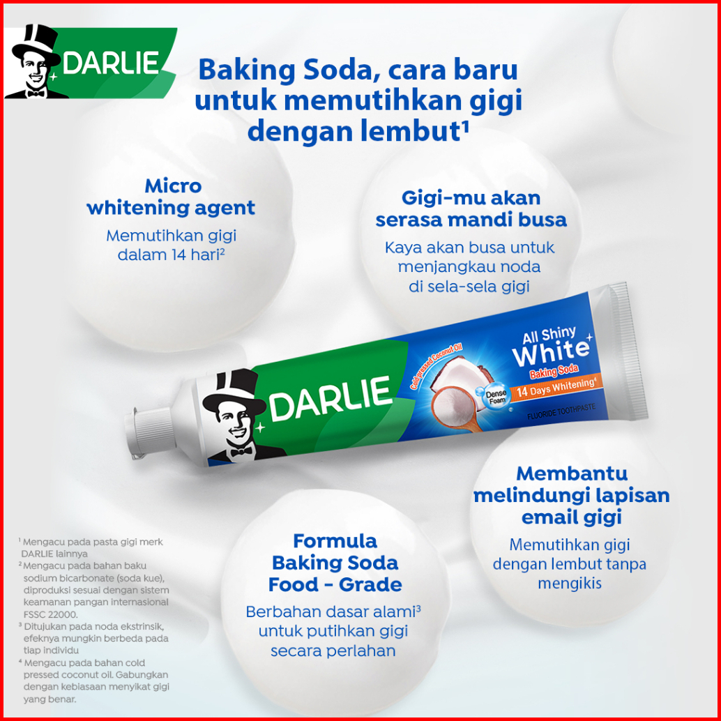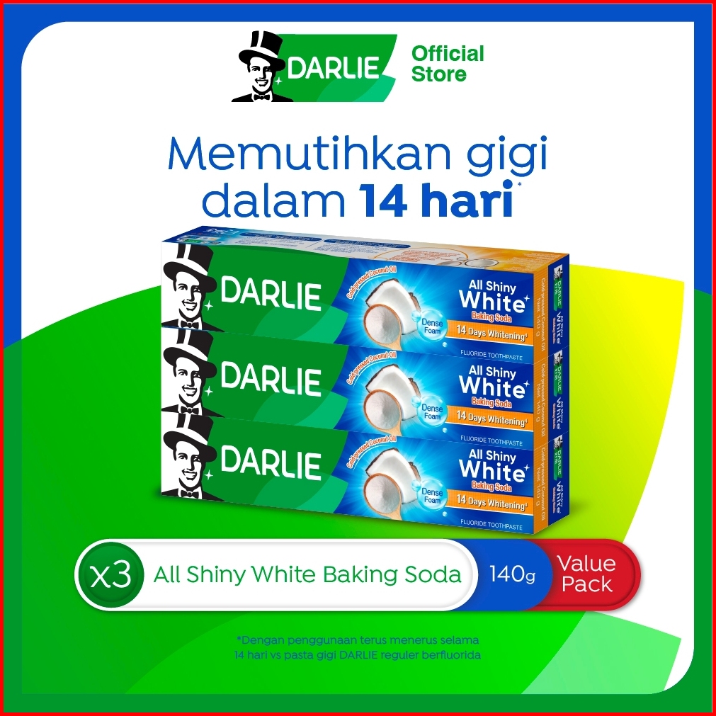 Darlie All Shiny White Foamy Baking Soda Pasta Gigi 140 Gr - Value Pack Isi 3 Pcs - Variasi