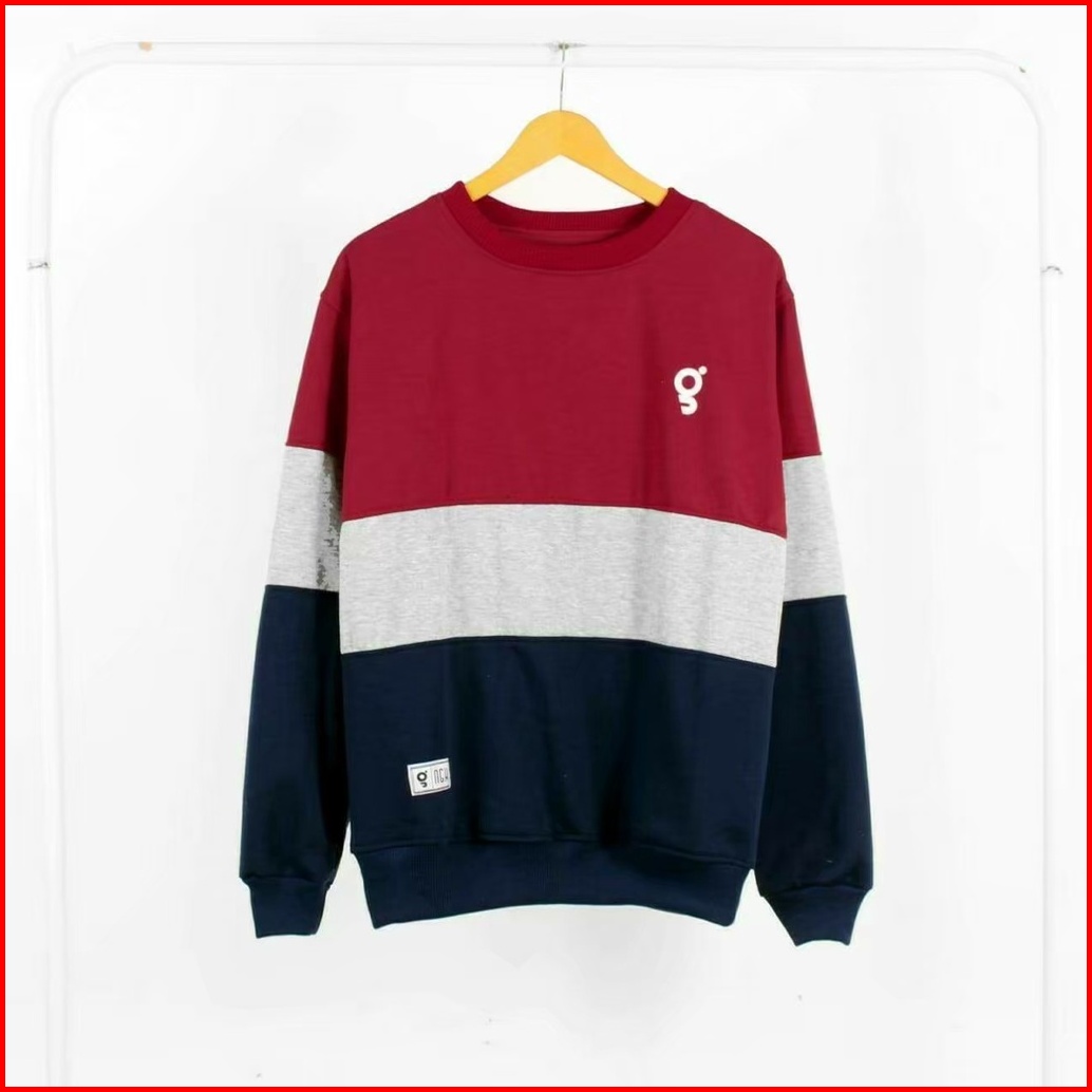 Sweater Crewneck Pria Sweater Kombinasi Tiga Warna L Xl Original Ngk Unisex Cowok Cewek Sweater Belang Blaster