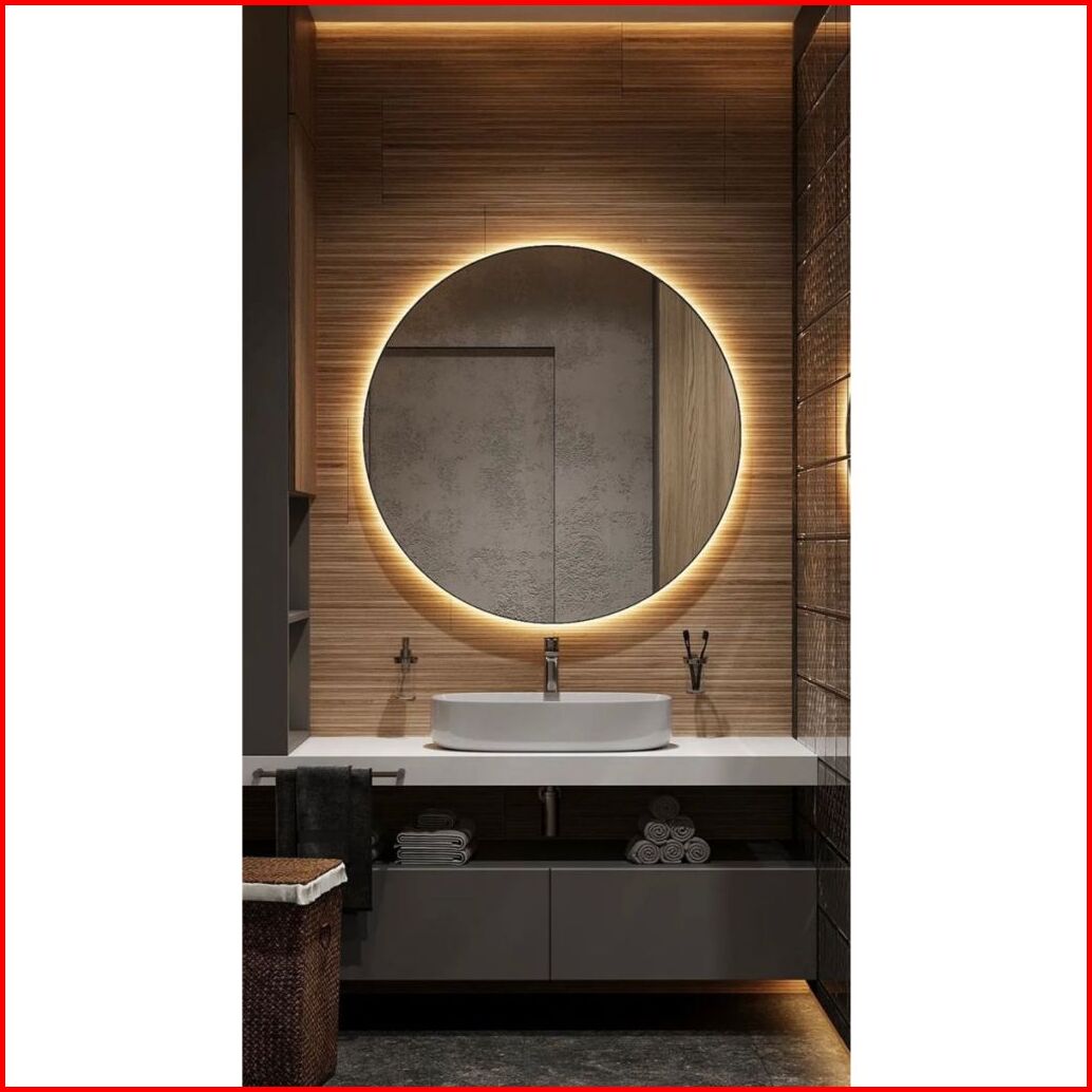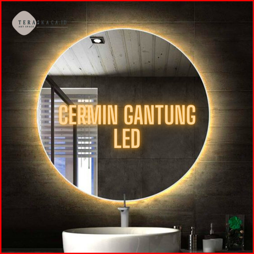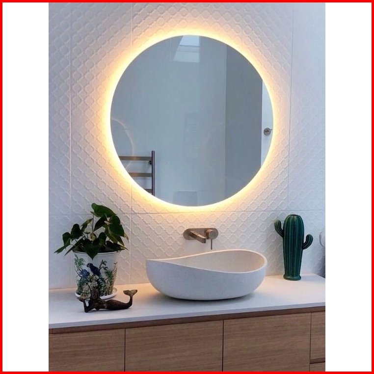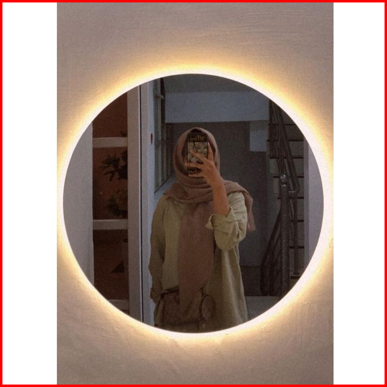 Cermin Dinding Gantung Bulat Led Strip Kaca Cermin Lampu Aesthetic Cermin Dinding Make Up Wastafel Mirror Led Lamp