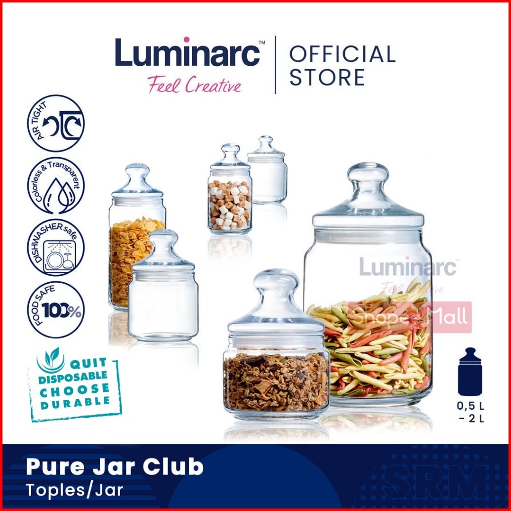 Luminarc Toples Kaca Pure Jar Club 500ml 750ml 1l 1 5l 2l