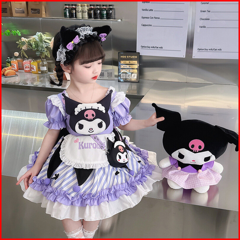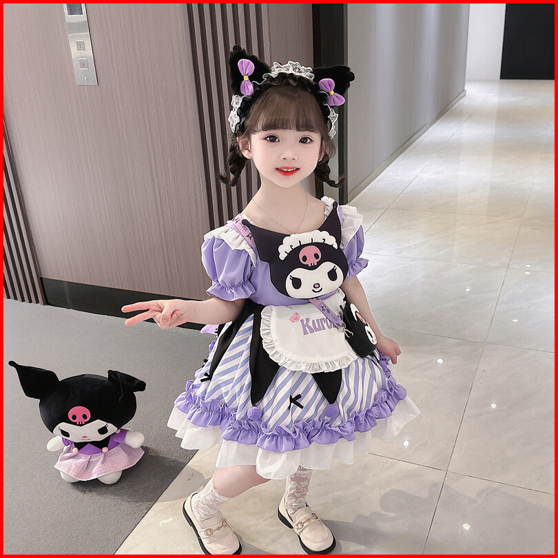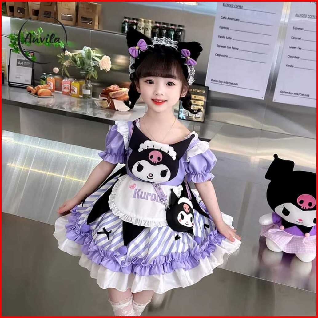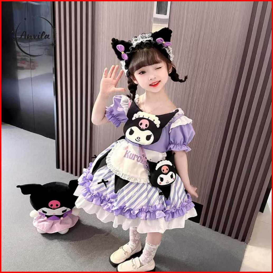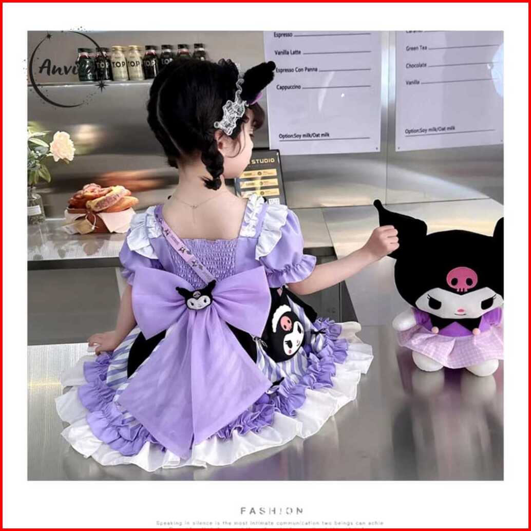 Dress Anak Perempuan Import Birthday Gaun Kuromi Purple Lucu Tutu Lengan Balon Girl Sanrio Fashion