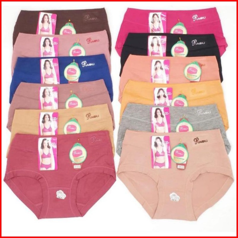 12pcs Celana Dalam Wanita Piaoli Katun Stretch