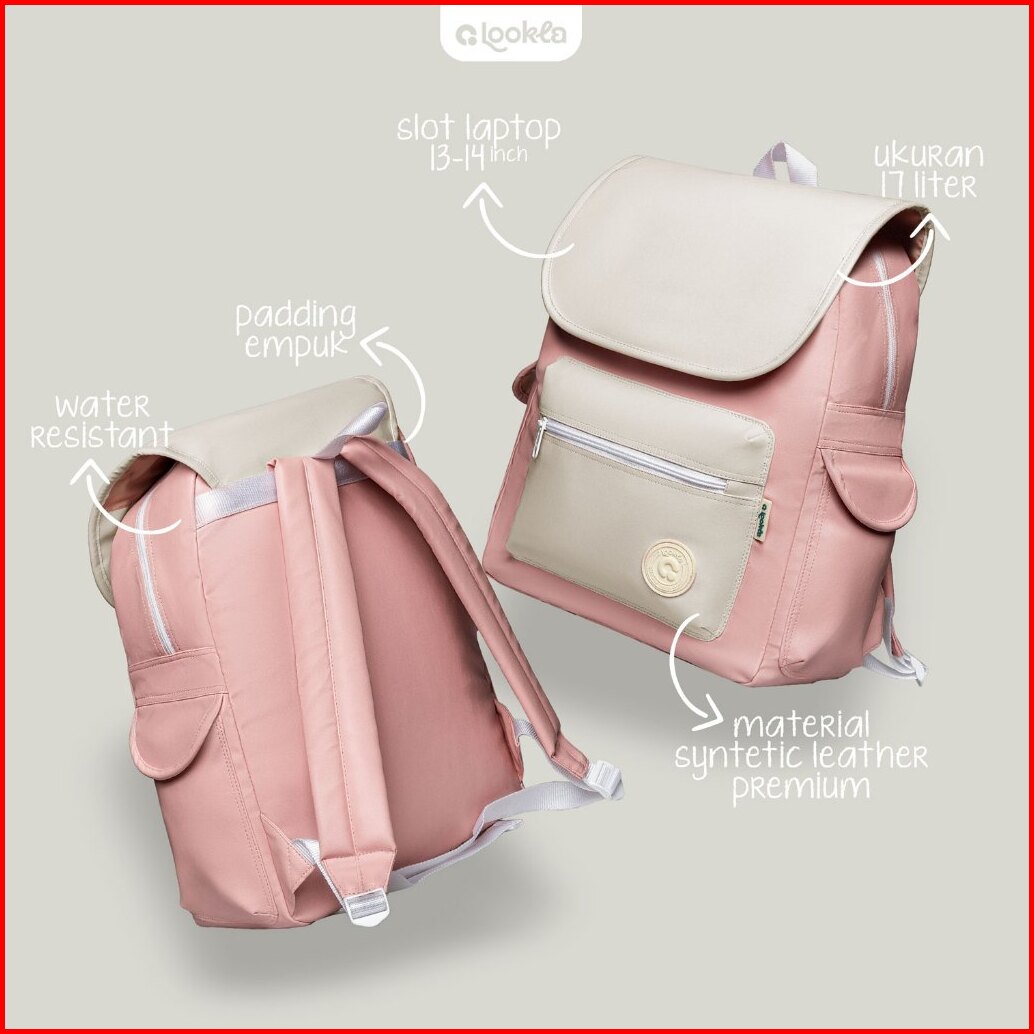 Lookla I Joana Twotone Tas Ransel Wanita Waterproof Backpack Leather Tas Kuliah Sekolah