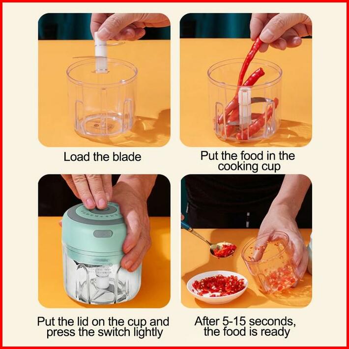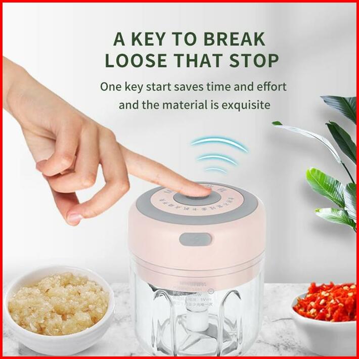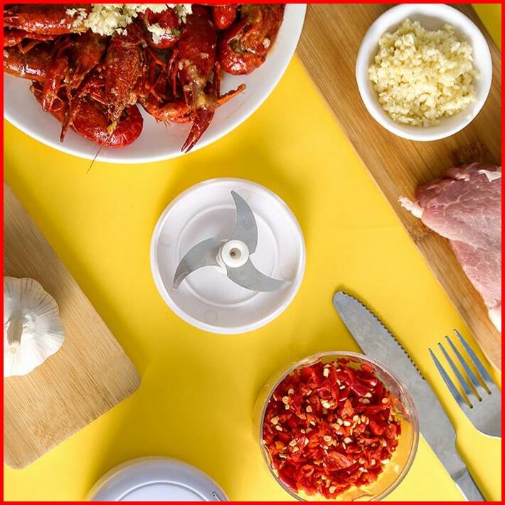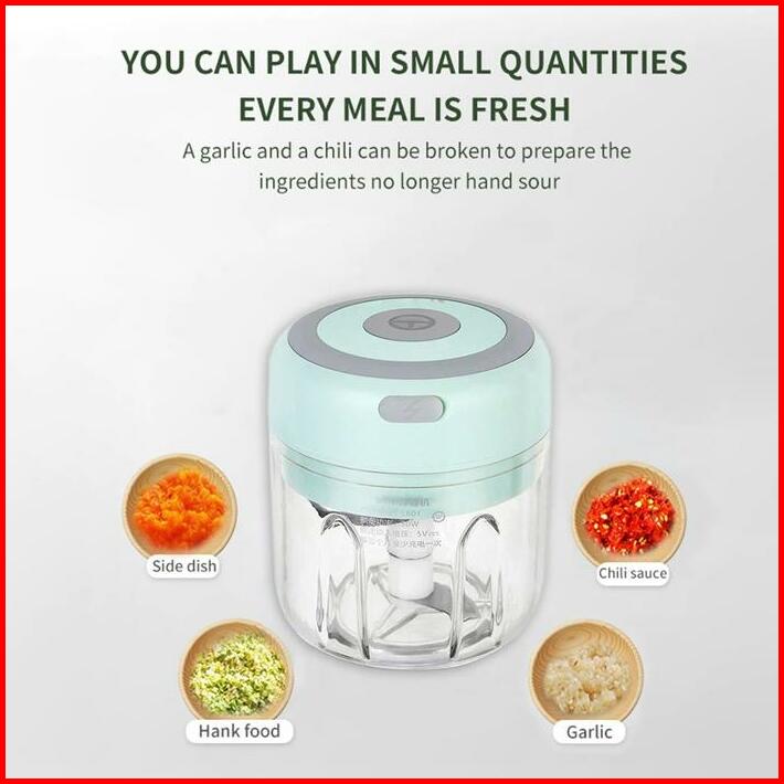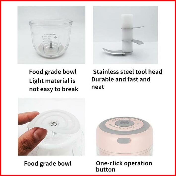 Food Chopper Mini Electric Usb Charge Three Layer Blade 250ml Pisau Stainless