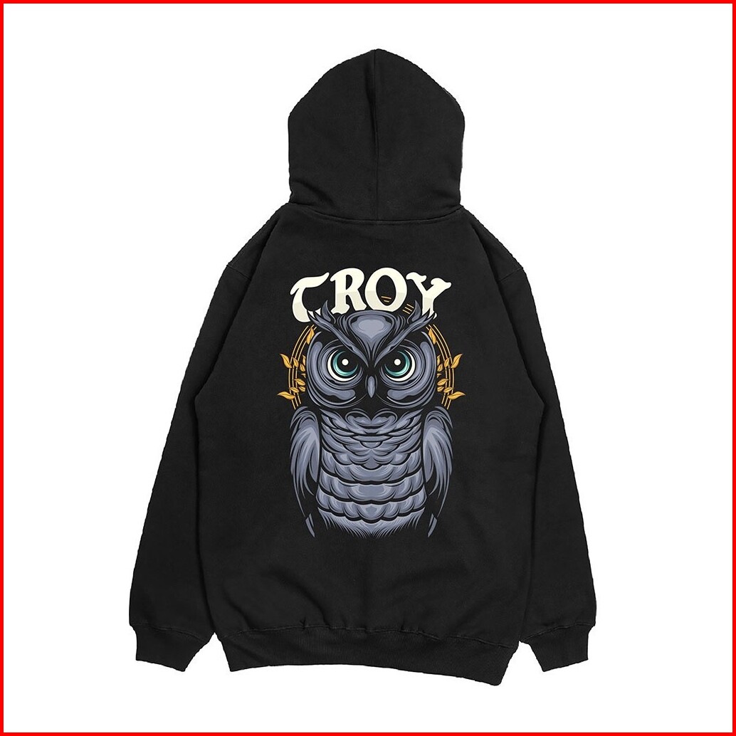 Troy Company Hoodie Pullover Black Bubo Little Owl - Sweater Hoodie Pria Hitam Kh 2362
