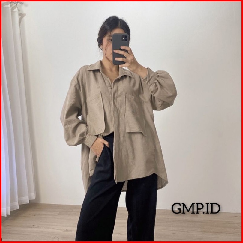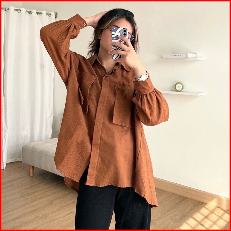 Kemeja Linen Oversize - Kemeja Linen Crinkle - Niki Shirt