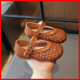 Sandal Anti Tabrakan Sederhana Bergaya Untuk Bayi Perempuan Sepatu Anak Sol Lembut Kait Lingkaran Berongga Tenun Ukuran