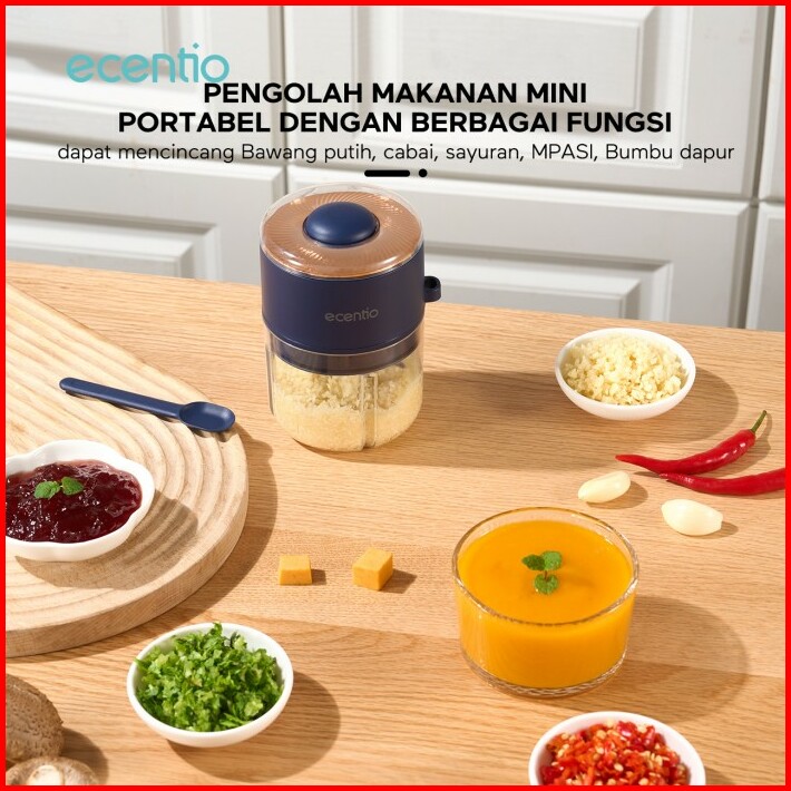 Ecentio Food Chopper Multifungsi 300ml Mini Blender Penghalus Daging Dan Bumbu