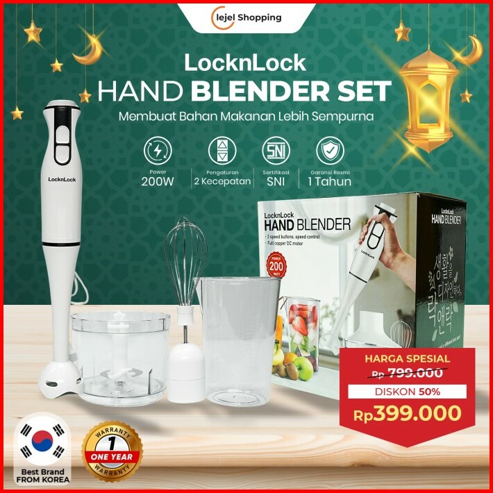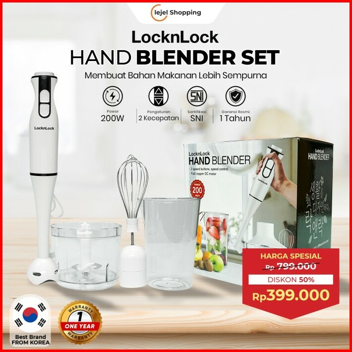 Locknlock Hand Blender Set Mixer Juicer Chopper Multifungsi 200 Watt