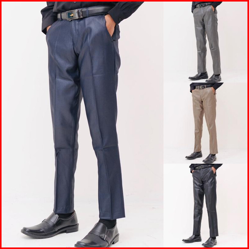 Celana Kerja Mengkilap Formal Kantor Bahan Metalik Premium Mc Wister