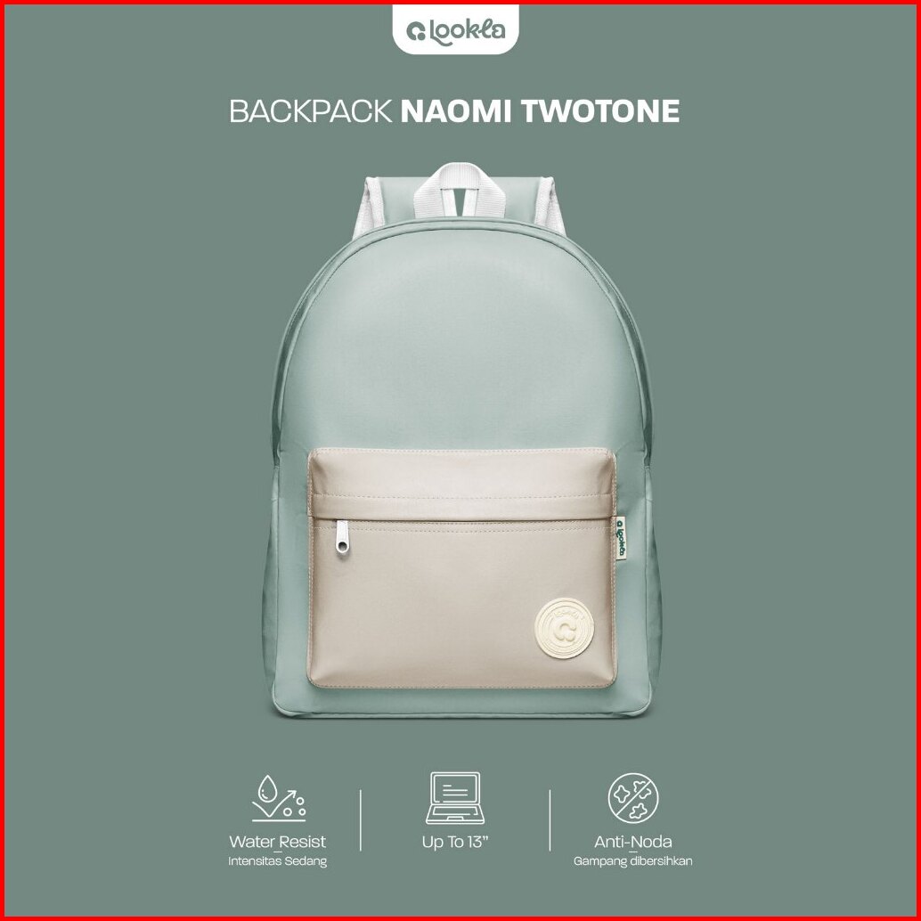 Lookla I Naomi Twotone Tas Ransel Wanita Stylish Backpack Sekolah Kuliah Kerja Bahan Anti Air