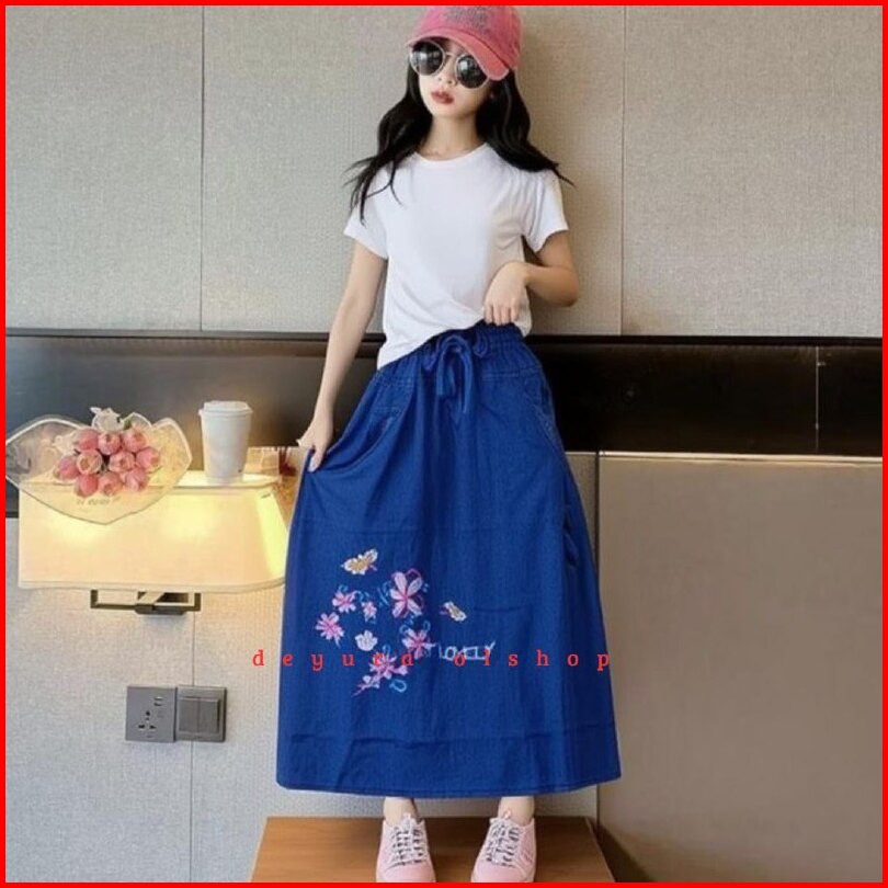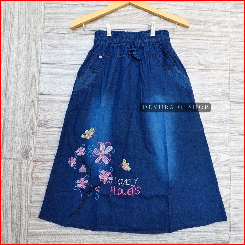 Rok Jeans Anak Bunga-bunga Usia 3-16 Tahun