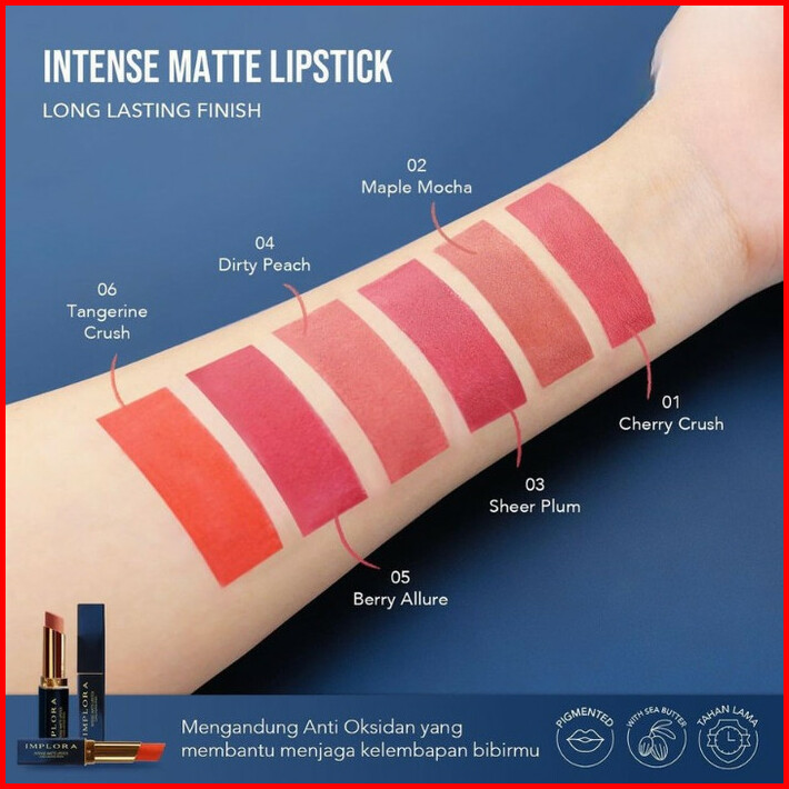 01 CHERRY CRUSH, 02 MAPLE MOCHA, 03 SHEER PLUM, 04 DIRTY PEACH, 05 BERRY ALLURE, 6TANGERINECRUSH