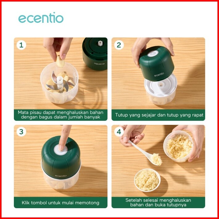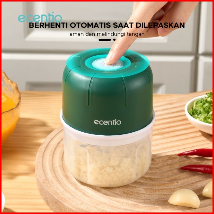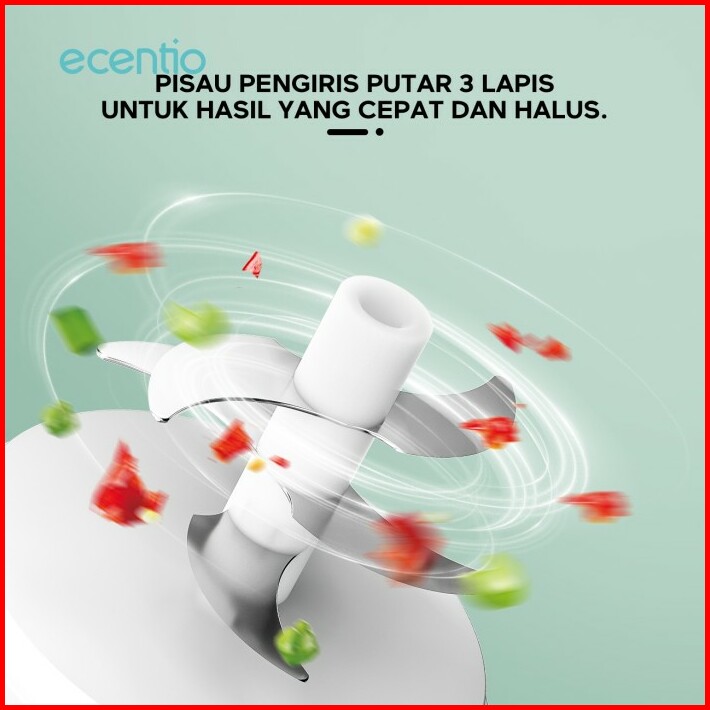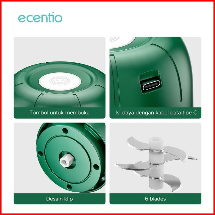 Ecentio Mini Chopper Blender 6 Pisau 250ml Portable Penggiling Bumbu Dapur Portable Penumbuk Bawang Hijau Gelap