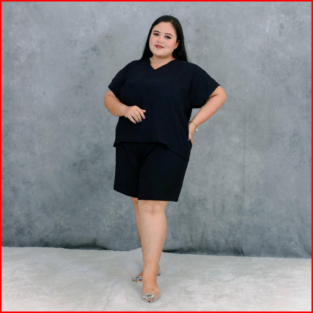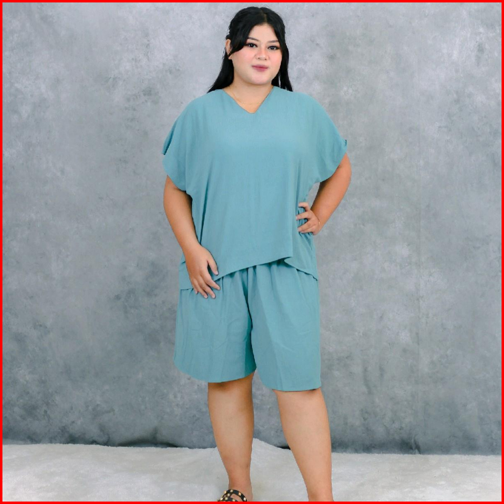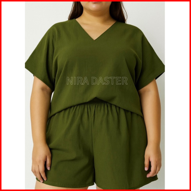 Nira Daster Setelan Jumbo Crinkle Airflow Polos Setelan Celana Pendek Wanita Setelan Lengan Pendek Setelan Wanita Baju R