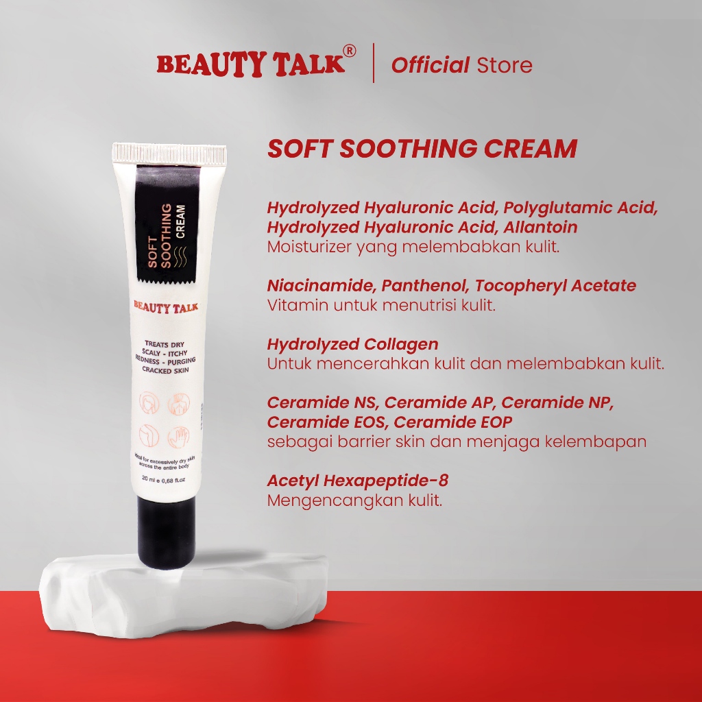 BEAUTY TALK Soft Soothing Cream - 20ML | Sensitive Pelembab untuk Mengatasi Menenangkan Jerawat kemerahan