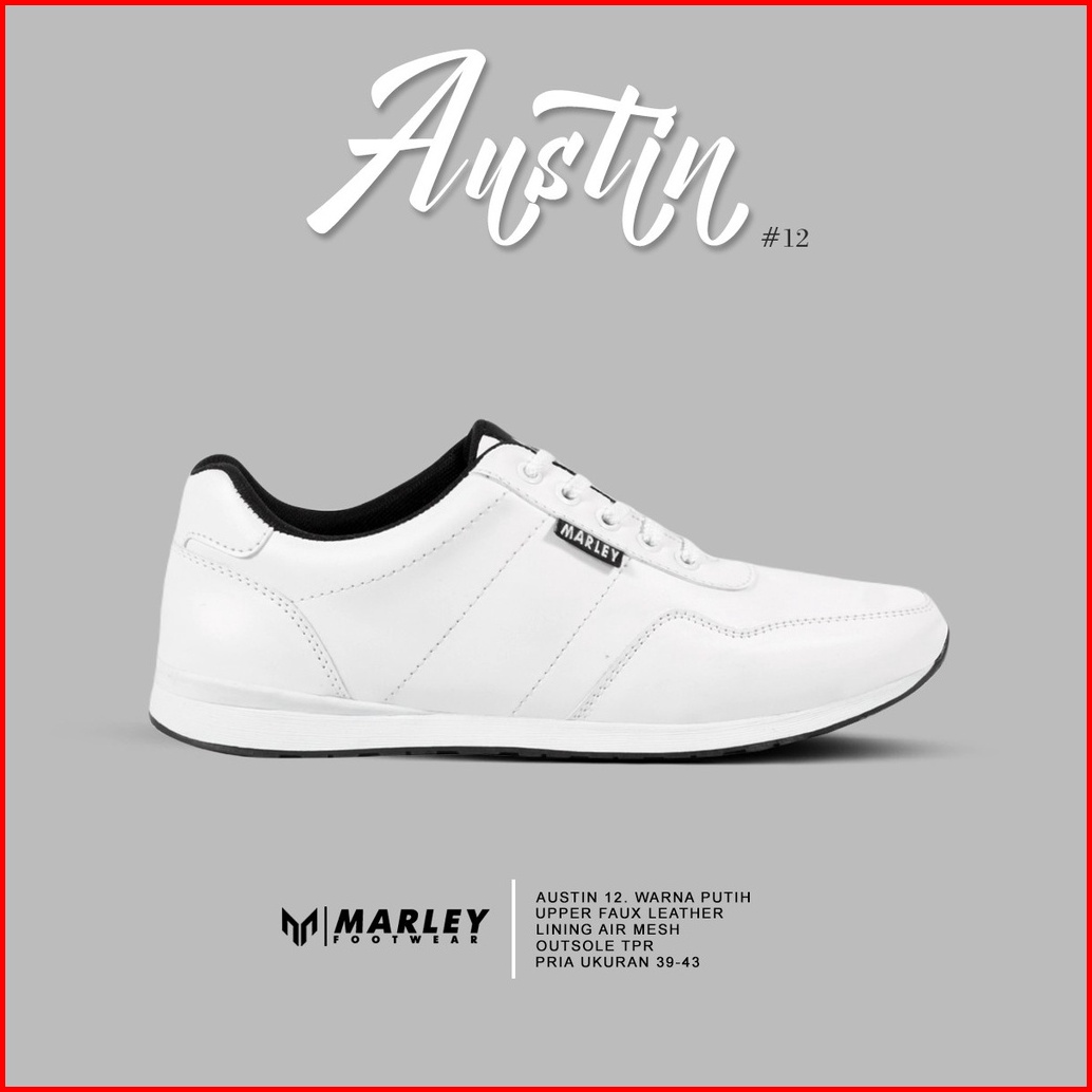 Marley Austin 12 - Marley Sepatu Sneakers Pria Casual Kets Sporty Joging Putih Bahan Kulit Sintetis