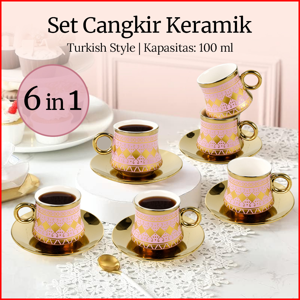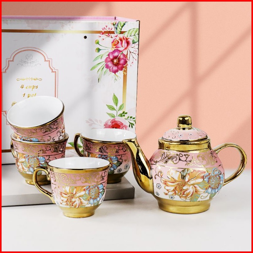 Ukuran 90ml Sunfili Cangkir Teko Keramik Set 4 Cups 1 Pot European Style - B140 Hampers Lebaran Hampers Pernikahan Kado