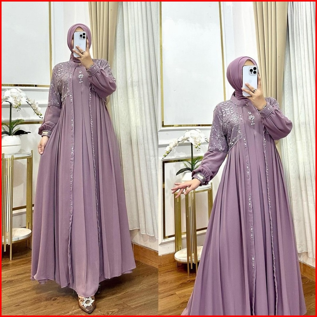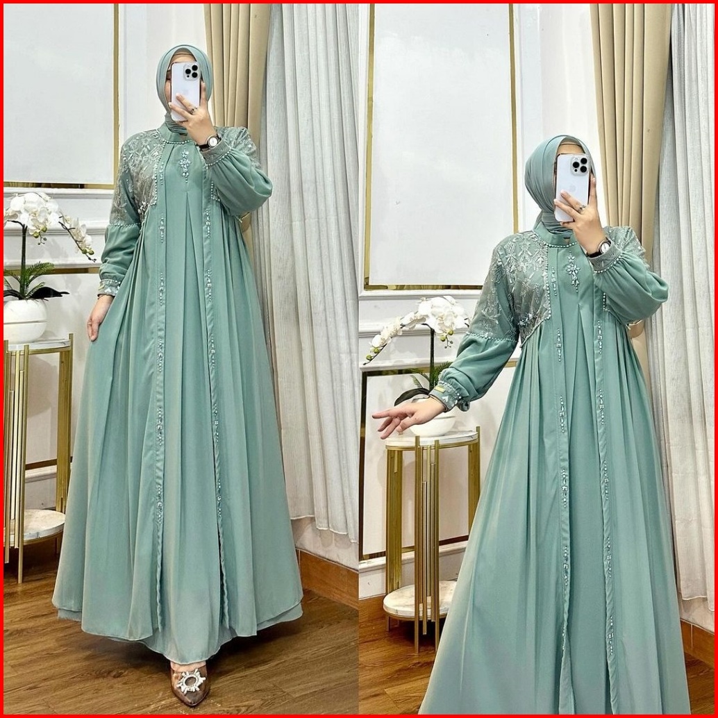 Gamis Lanara Dress Ceruty Babydoll Full Puring Gamis Dewasa Payet Dress 2 Layer Tangan Kancing
