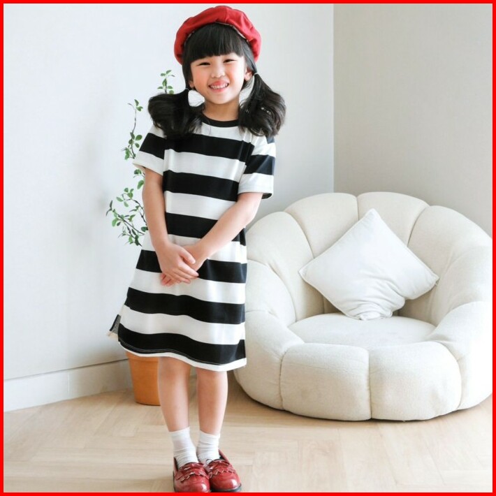 Minicottons Striped Dress Salur Besar Anak Perempuan
